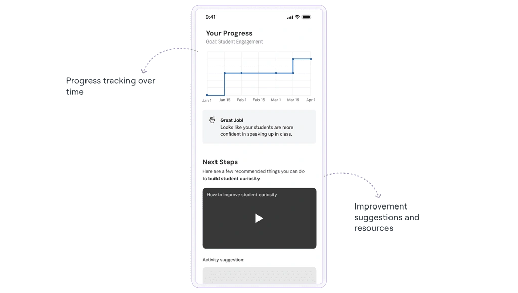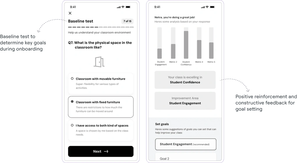 The final solution developed into a set of enhancements to Quest Alliance's existing application, designed to sustain a continuous cycle of learning and implementation for educators. Key features include goal-setting, progress tracking, and the development of personalised learning pathways to maintain educator agency and create accountability for ongoing engagement.