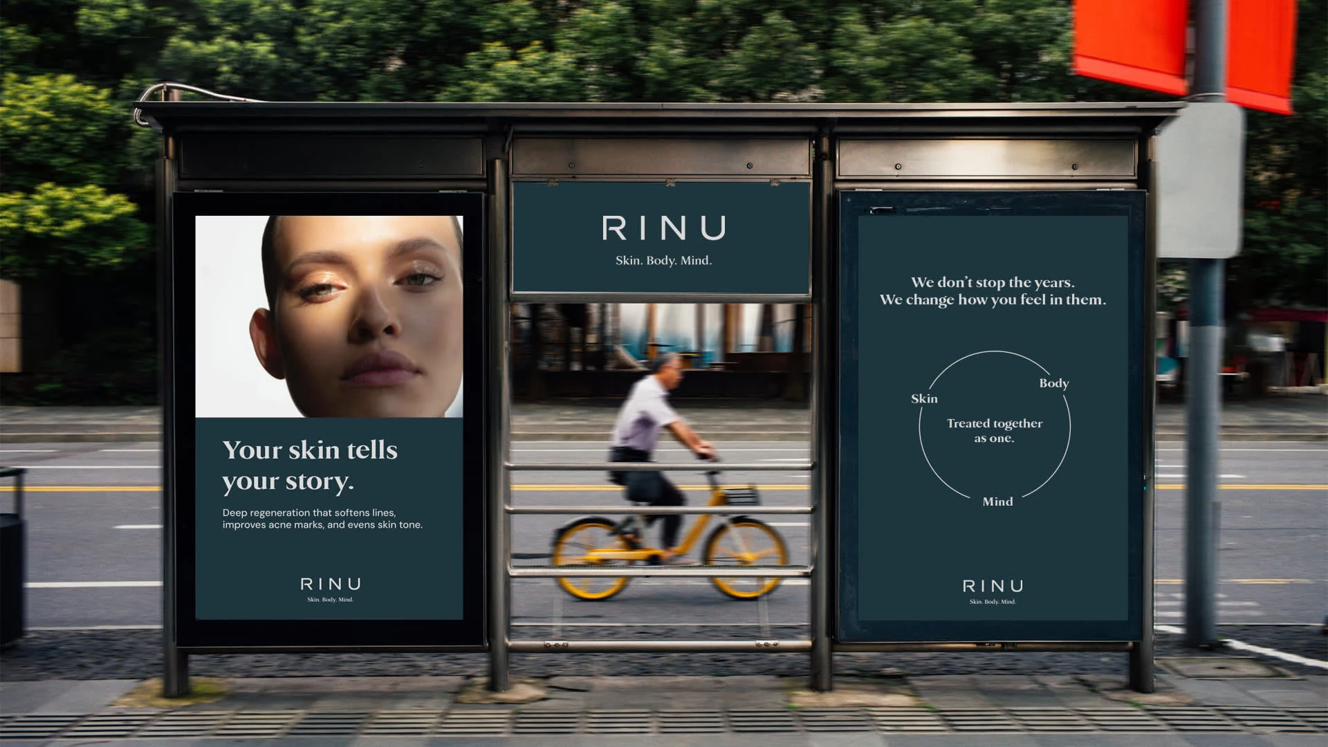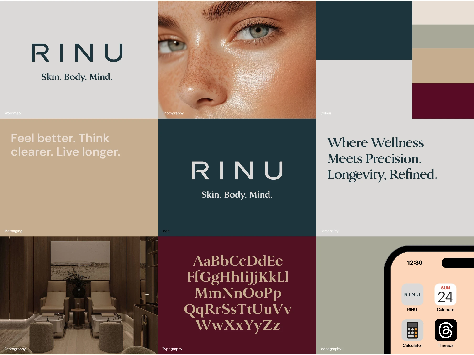 I named the brand RINU, meaning Youth in Albanian and read in English as Renew, with the same pronunciation. This dual meaning was intentional, allowing the brand to feel both rooted and international, ready to scale into other markets without losing its essence. At its core, RINU translates to renew me, a direct reflection of its role as a premium longevity and beauty clinic focused on regeneration, balance, and long term wellbeing.