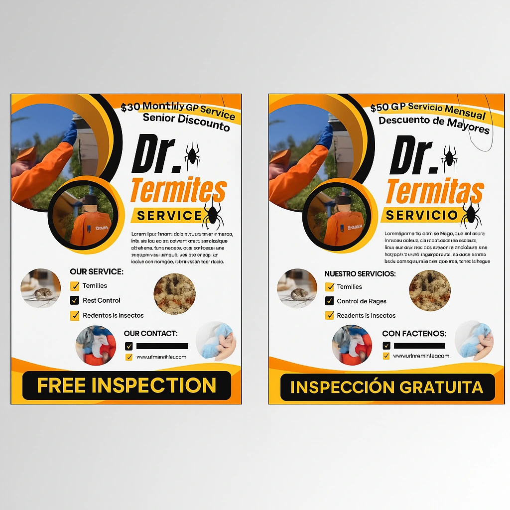 Bilingual promotional flyers with clean branding and clear service details to support a client’s role, boosting engagement and professional marketing assets.