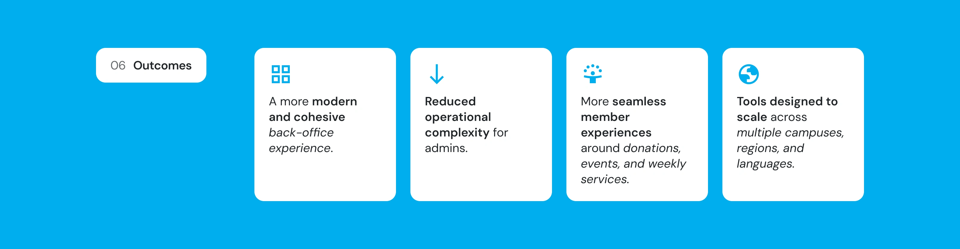 Web platform for organization management, streamlining donations, events, and content across campuses.