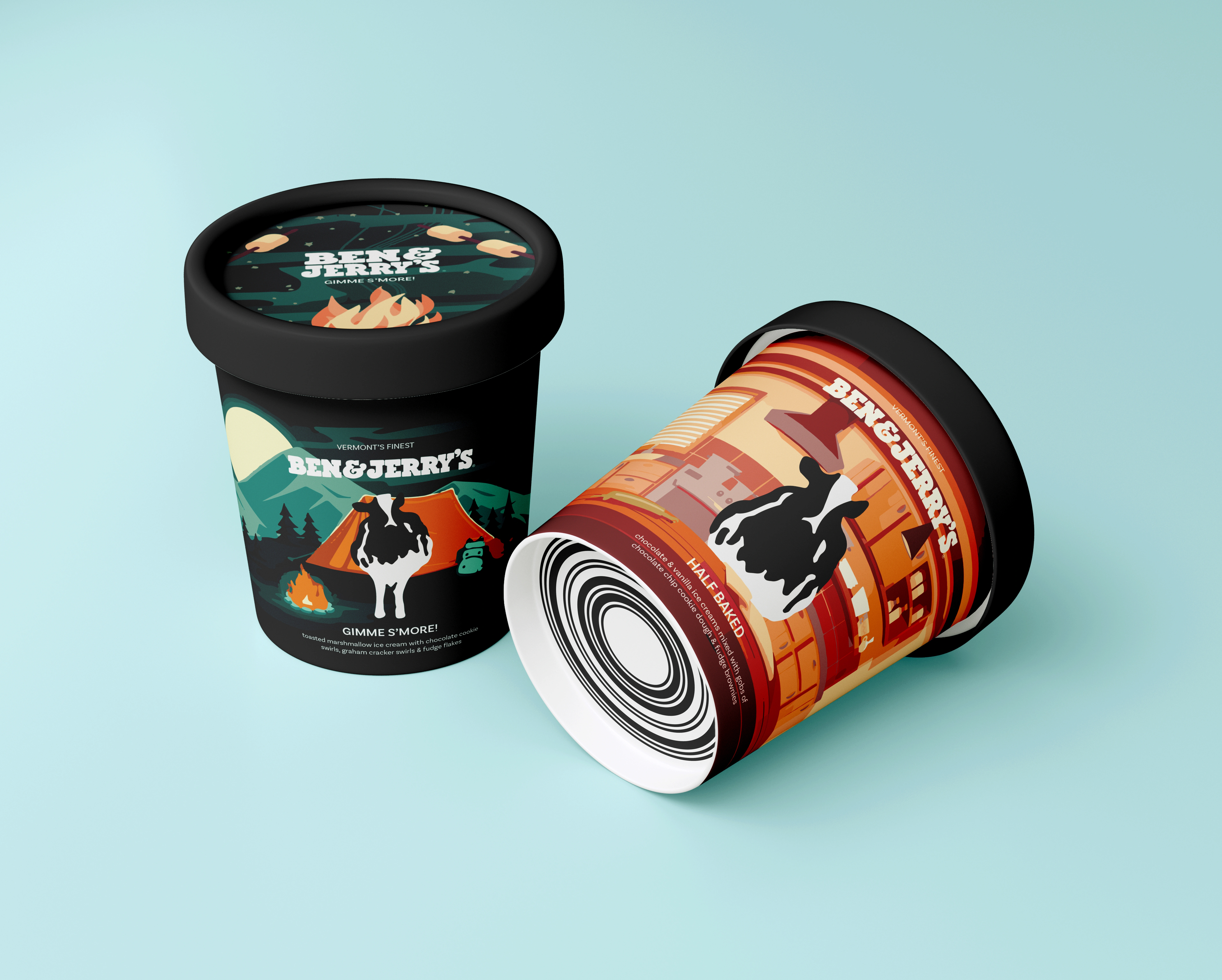 Through my competitor research, I determined that Ben & Jerry’s was the only brand to use illustration on their packaging. Leaning into that will make them stand out from their competitors and resonate more with their target audience.
