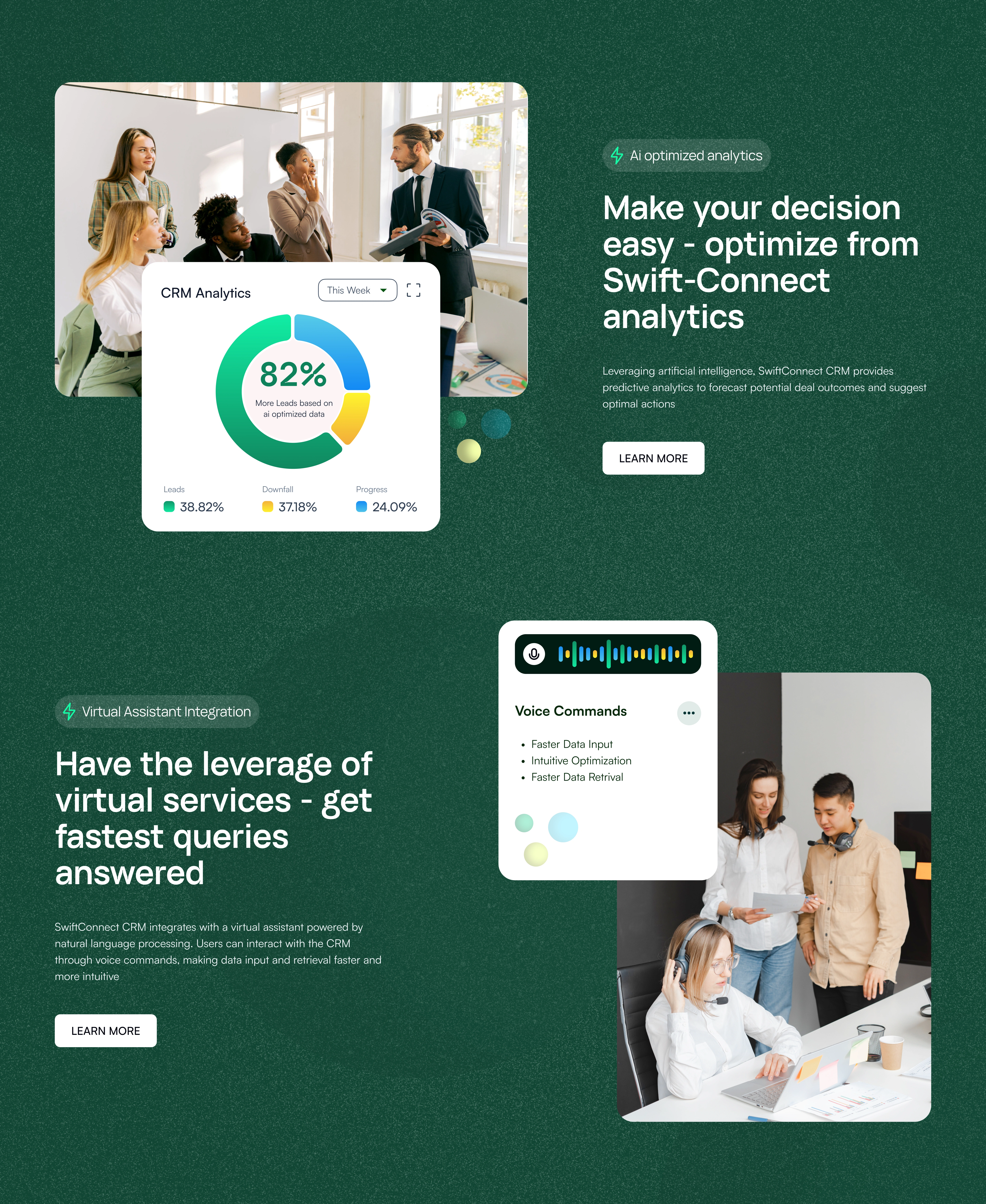 It's a concept where to have the Leverage of artificial intelligence, SwiftConnect CRM provides predictive analytics to forecast potential deal outcomes.