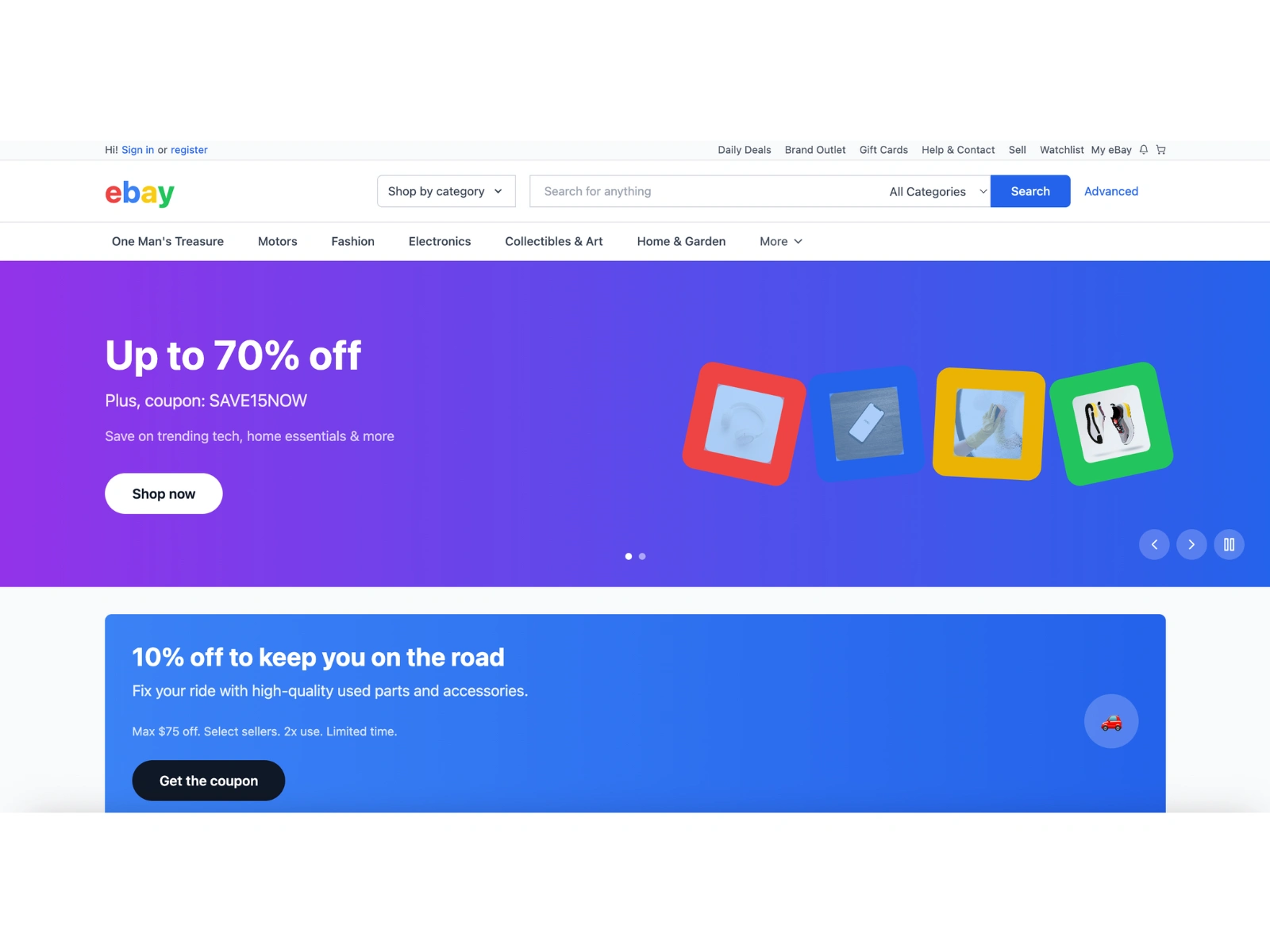 Rebuilt/cloned eBay landing page, built in Bolt.