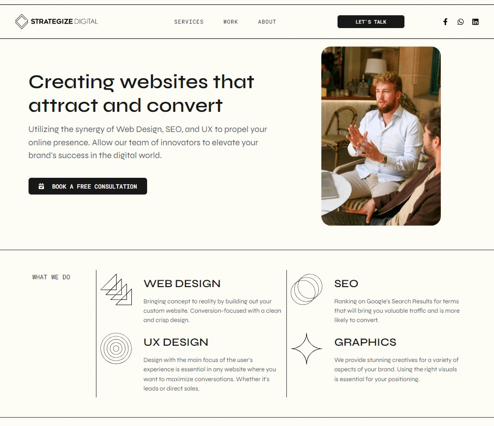 This here is my personal website, showcasing my portfolio and services in a simplistic but effective design. Synergizing Web Design, SEO, and UX to the maximum.