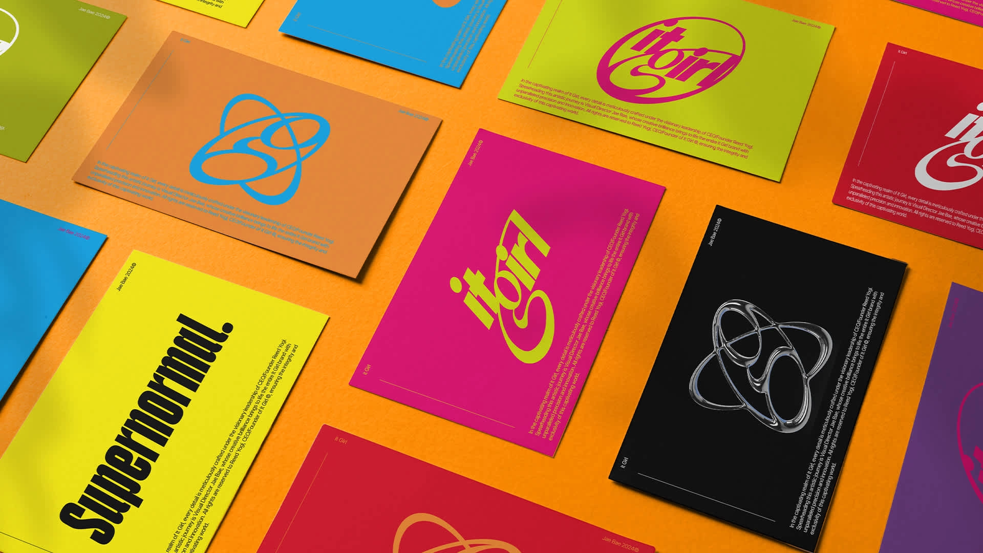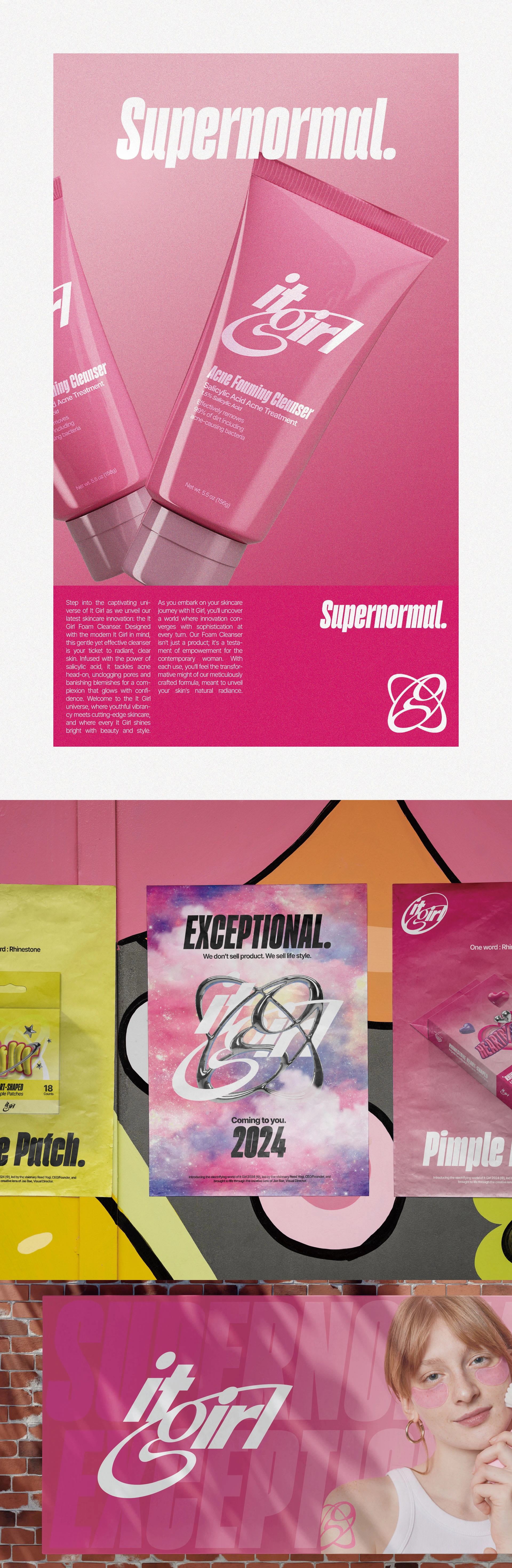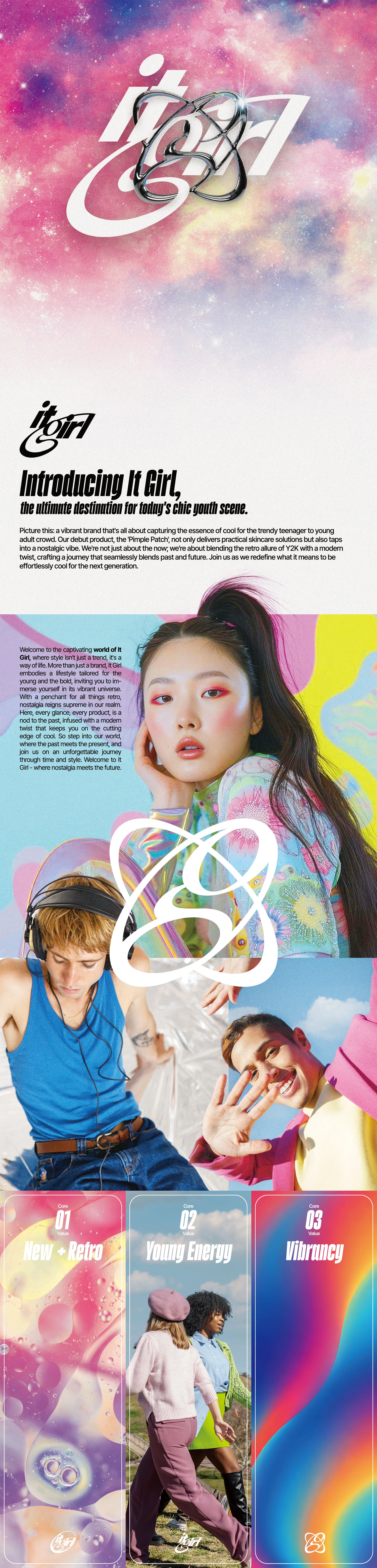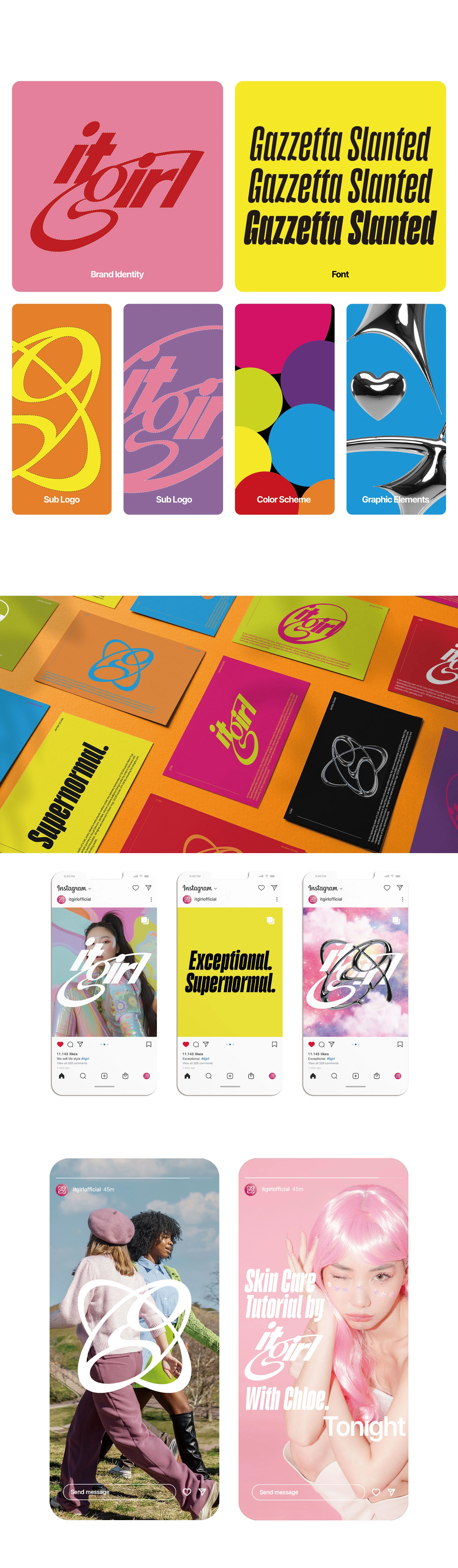 Brand identity design for It Girl, a Los Angeles-based beauty brand inspired by retro and Y2K aesthetics.