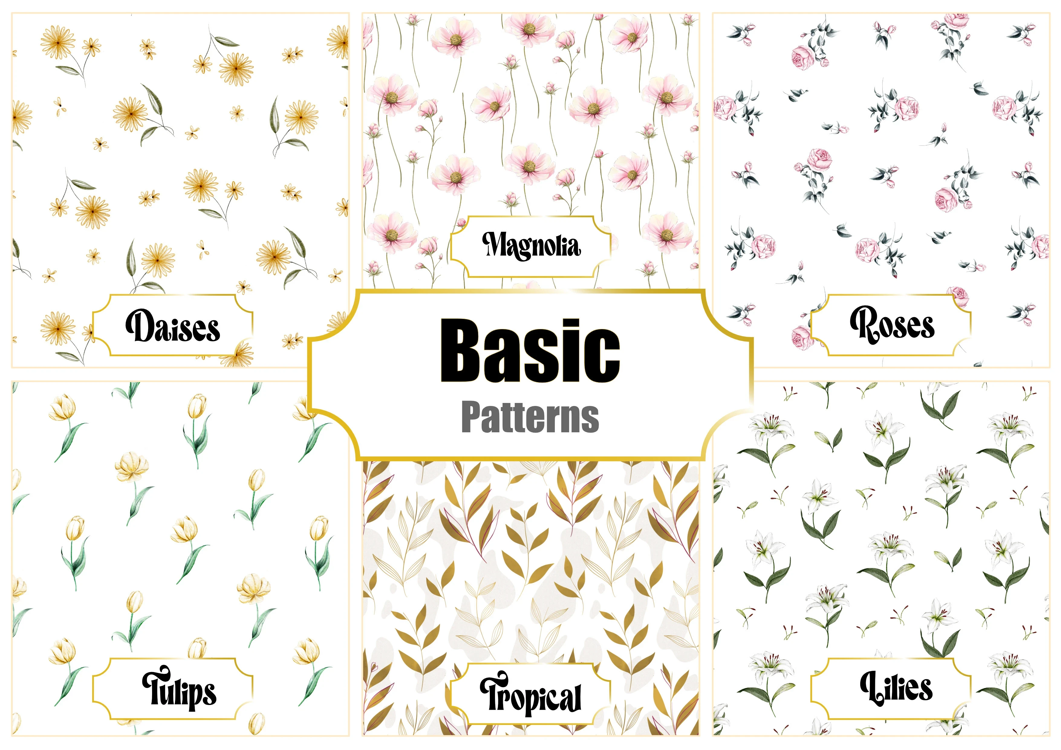 Basic Floral Pattern CollectionThis project showcases a curated collection of seamless floral surface patterns, created using soft watercolor textures and hand…