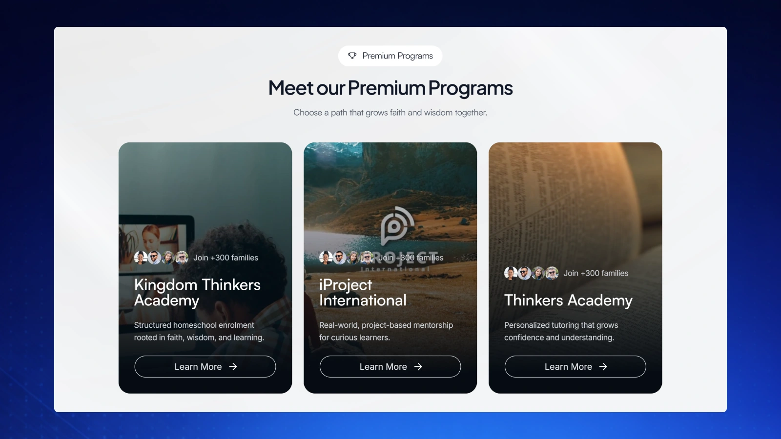 Education and EdTech companies looking to communicate innovation and scale with a premium, conversion-ready interface.