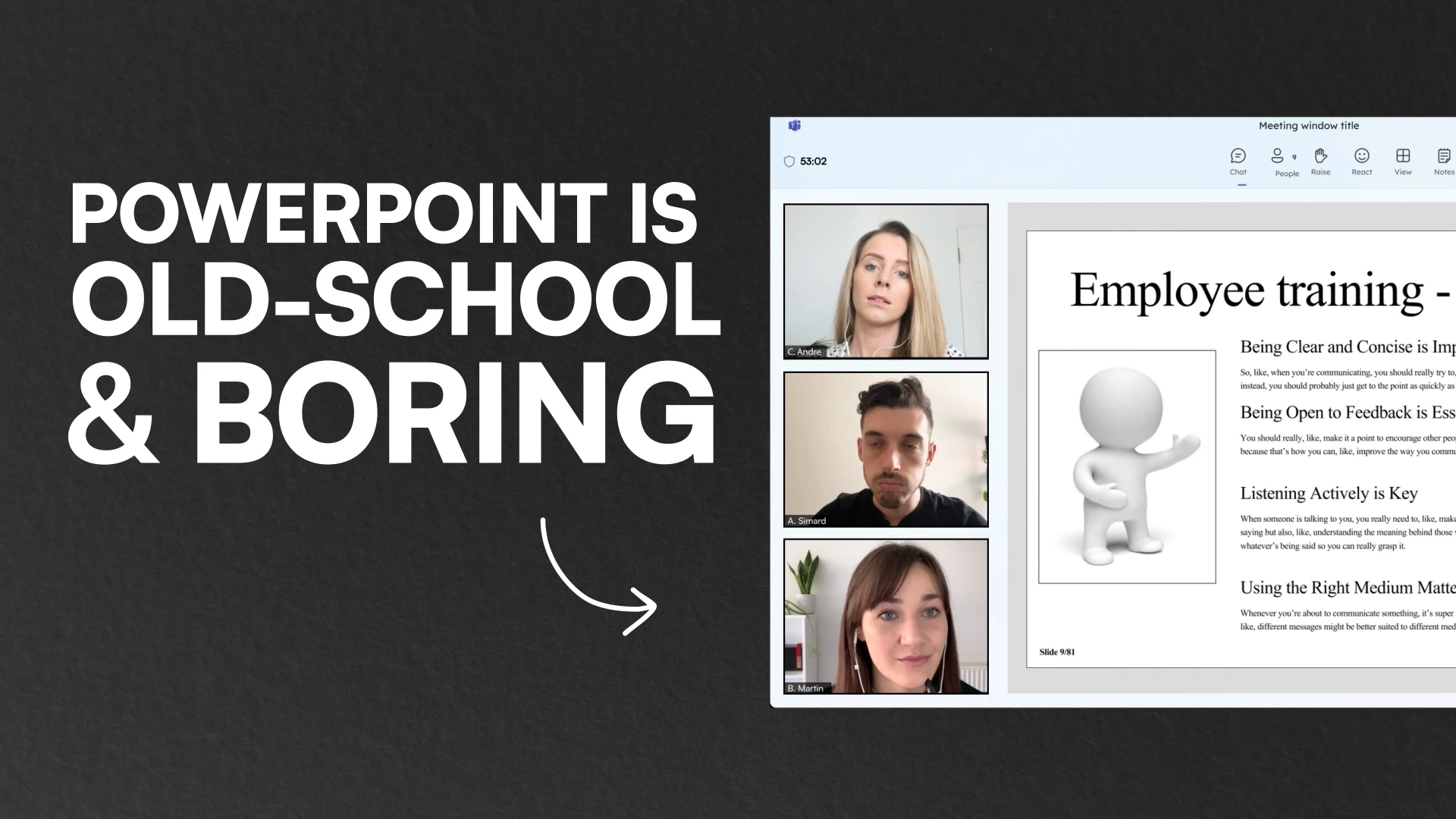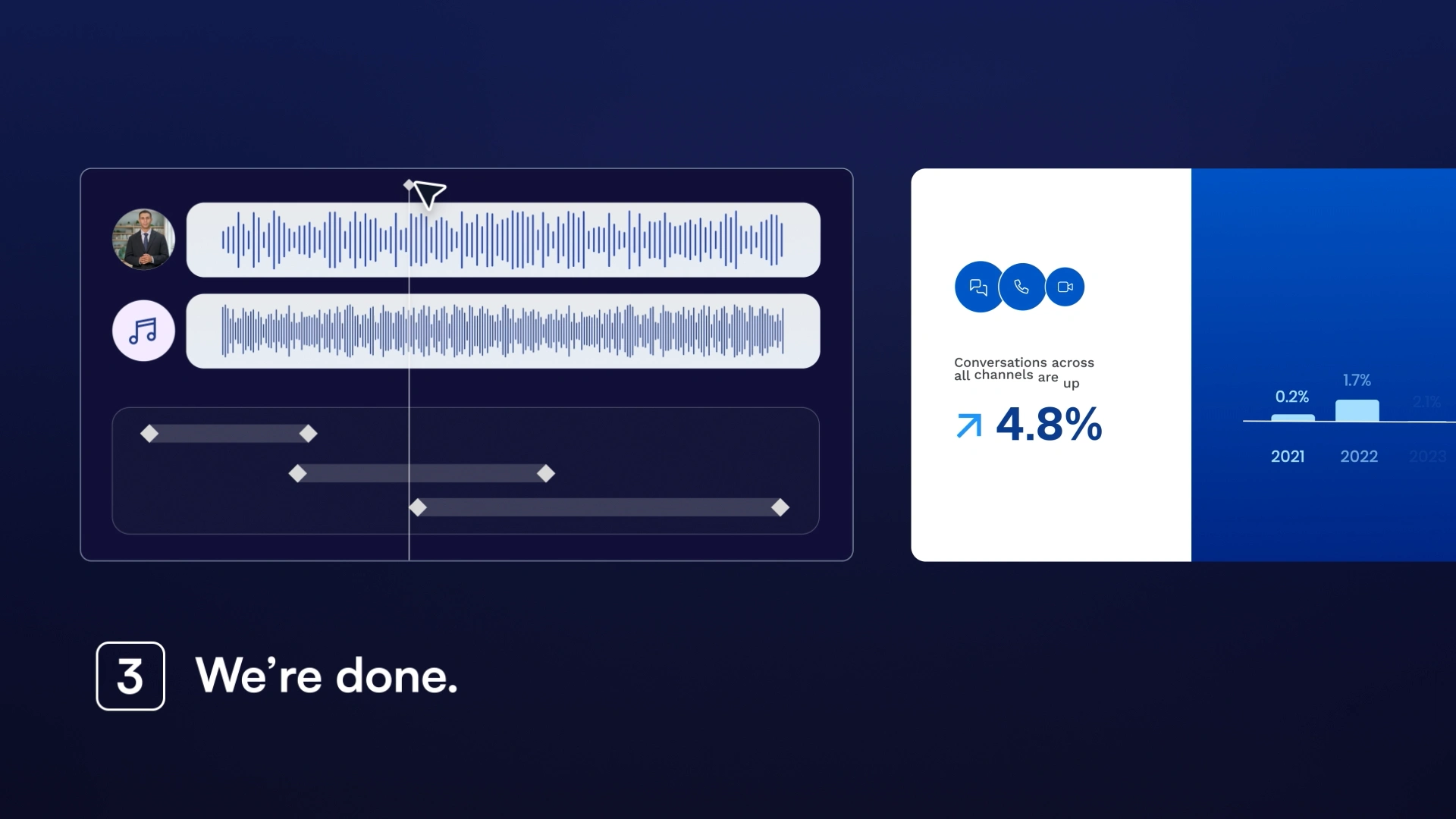 We used all the tools in the box for this one: editing, animation, 2D, 3D, stock, AI, real work, fake work, everything. My face is even in there at some point (I'm the bored guy sighing).