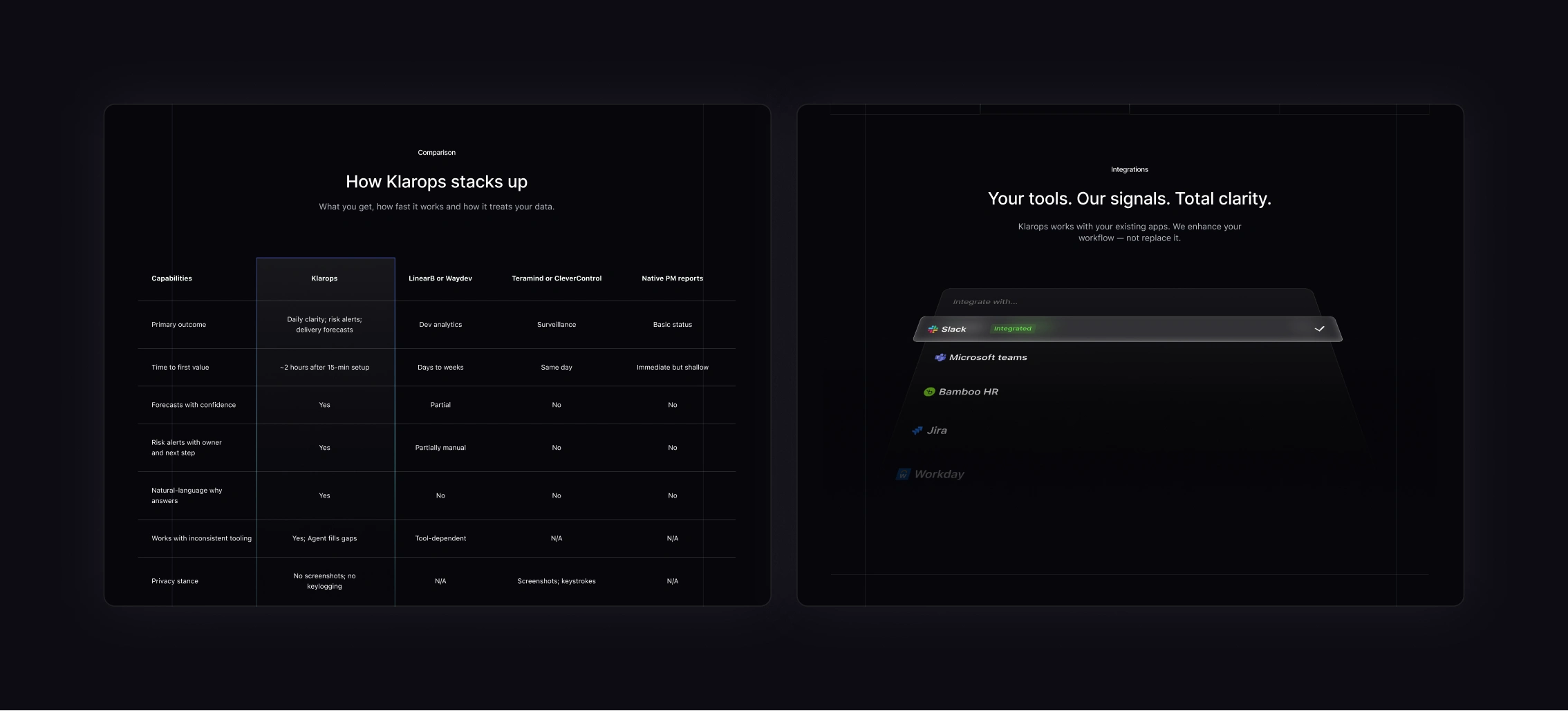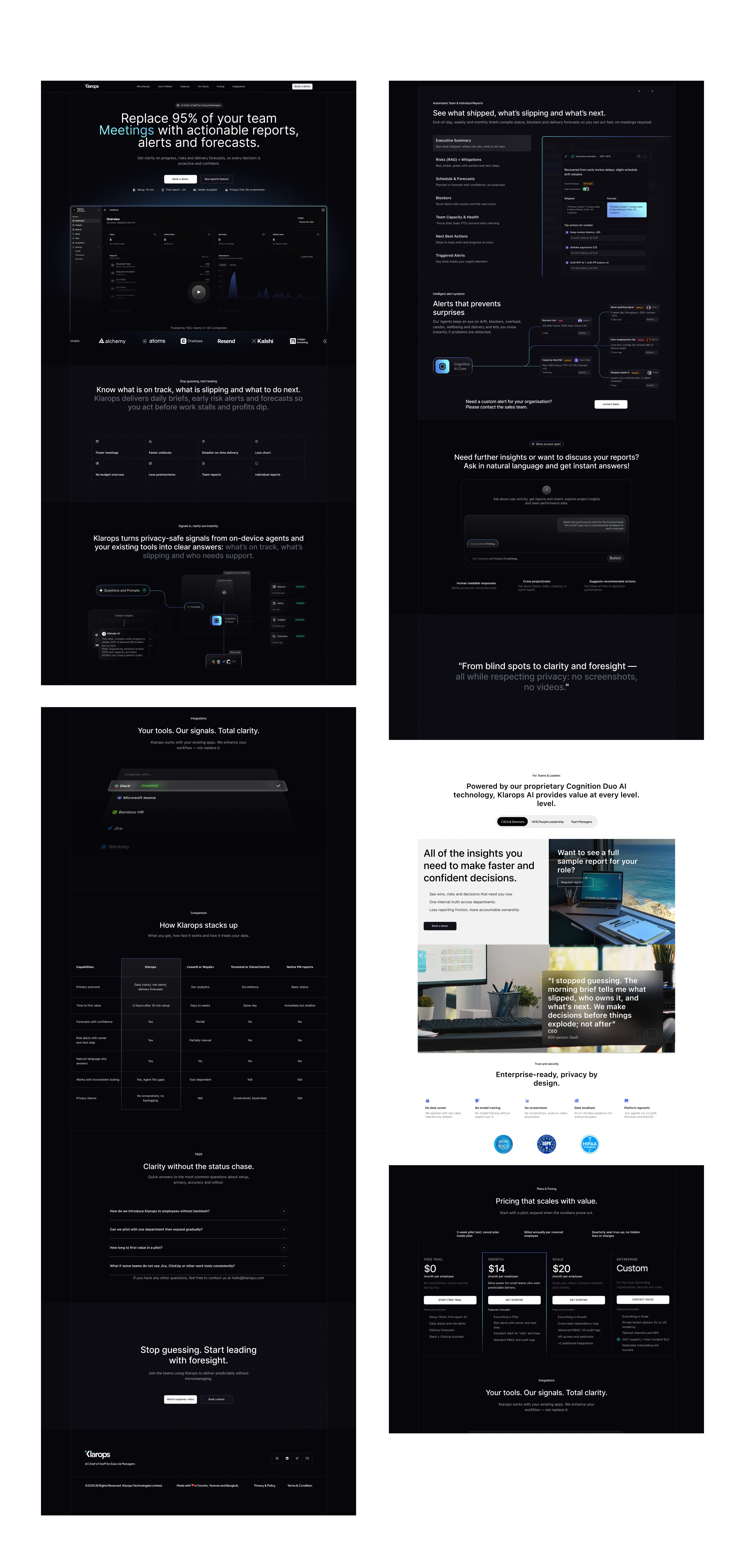 We designed and developed the marketing website for Klarops: an AI-powered Chief-of-Staff platform for executives and delivery teams. Built fully in Framer, the site was crafted to clearly communicate the product’s value, drive demo bookings, and highlight trust through strong messaging and visual clarity.