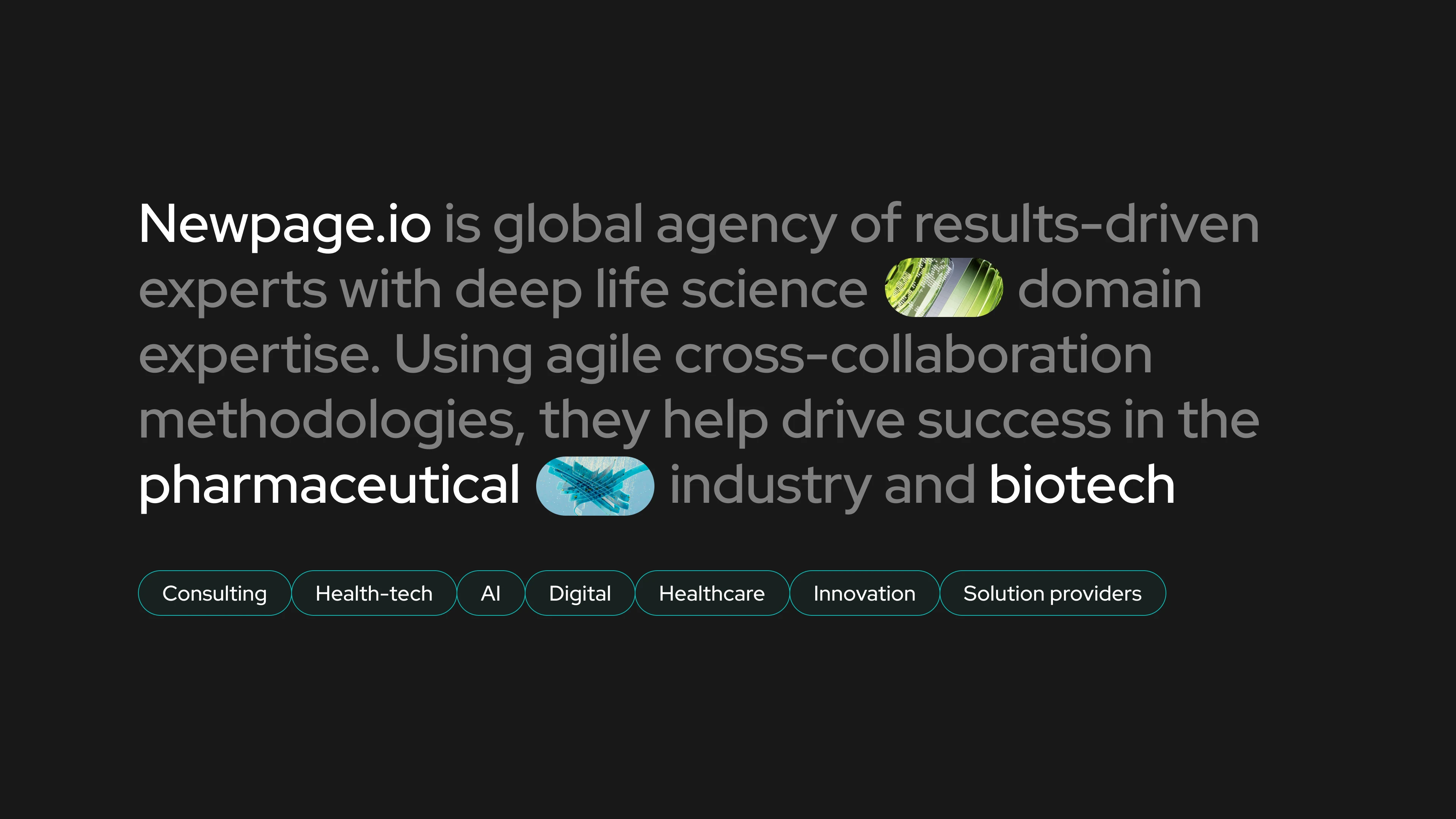 Newpage.io is a global agency of results-driven experts with deep life science domain expertise. Using agile cross-collaboration methadologies, they help drive succes in the pharmaceutical industry and biotech.