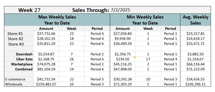 This sales analytics dashboard identifies the specific weeks and fiscal periods when each sales channel achieves maximum and minimum performance throughout the year. By pinpointing seasonal peaks and valleys alongside average benchmarks, it enables strategic planning for inventory, staffing, and marketing initiatives based on predictable performance patterns.