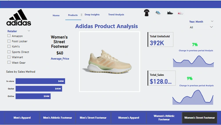 Designed an interactive Power BI dashboard for Adidas to analyze sales performance.