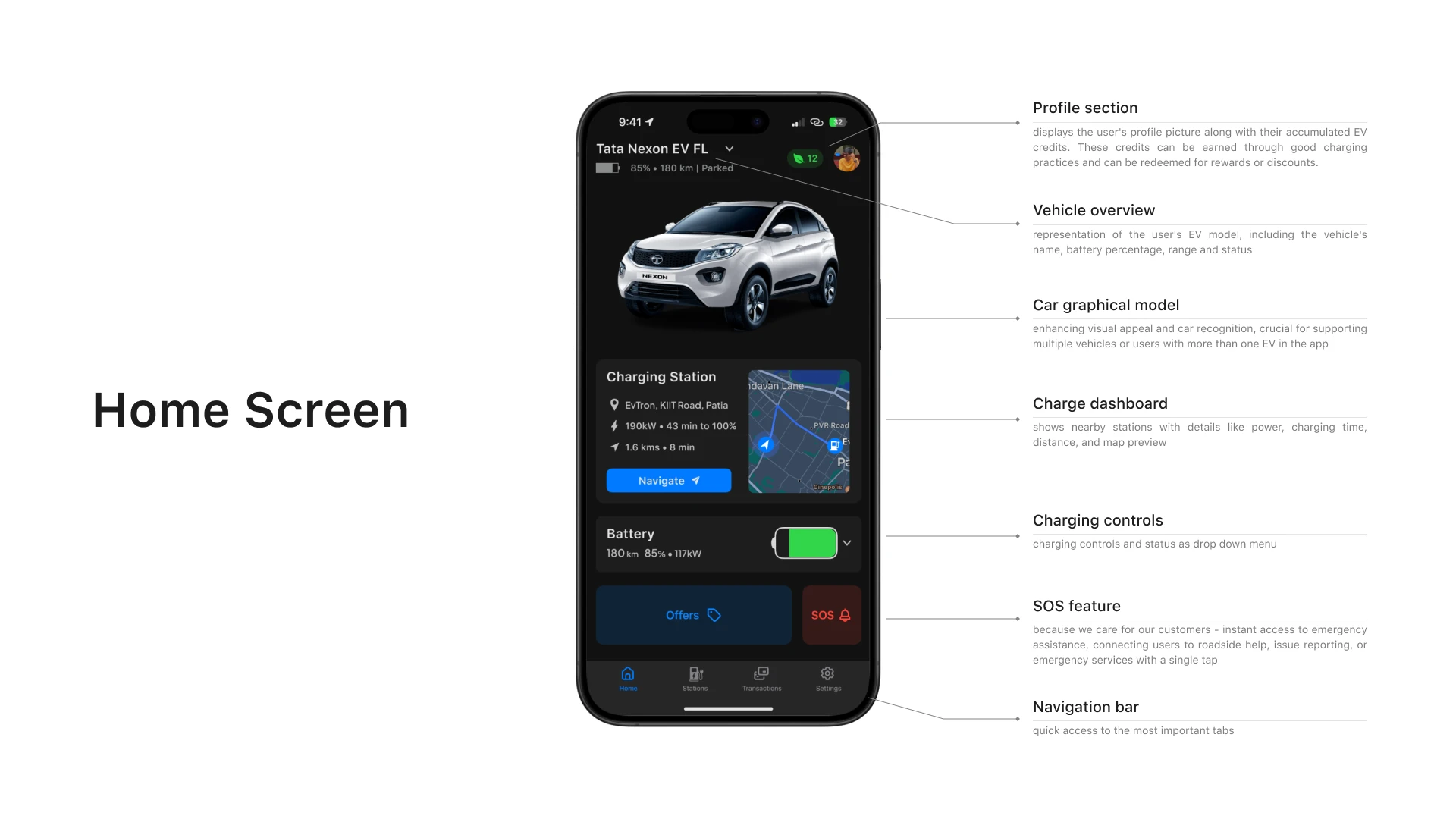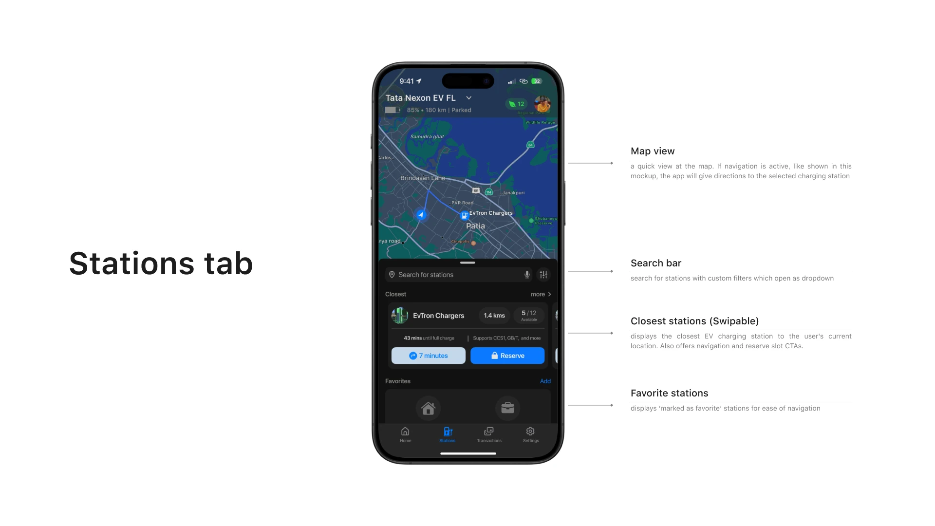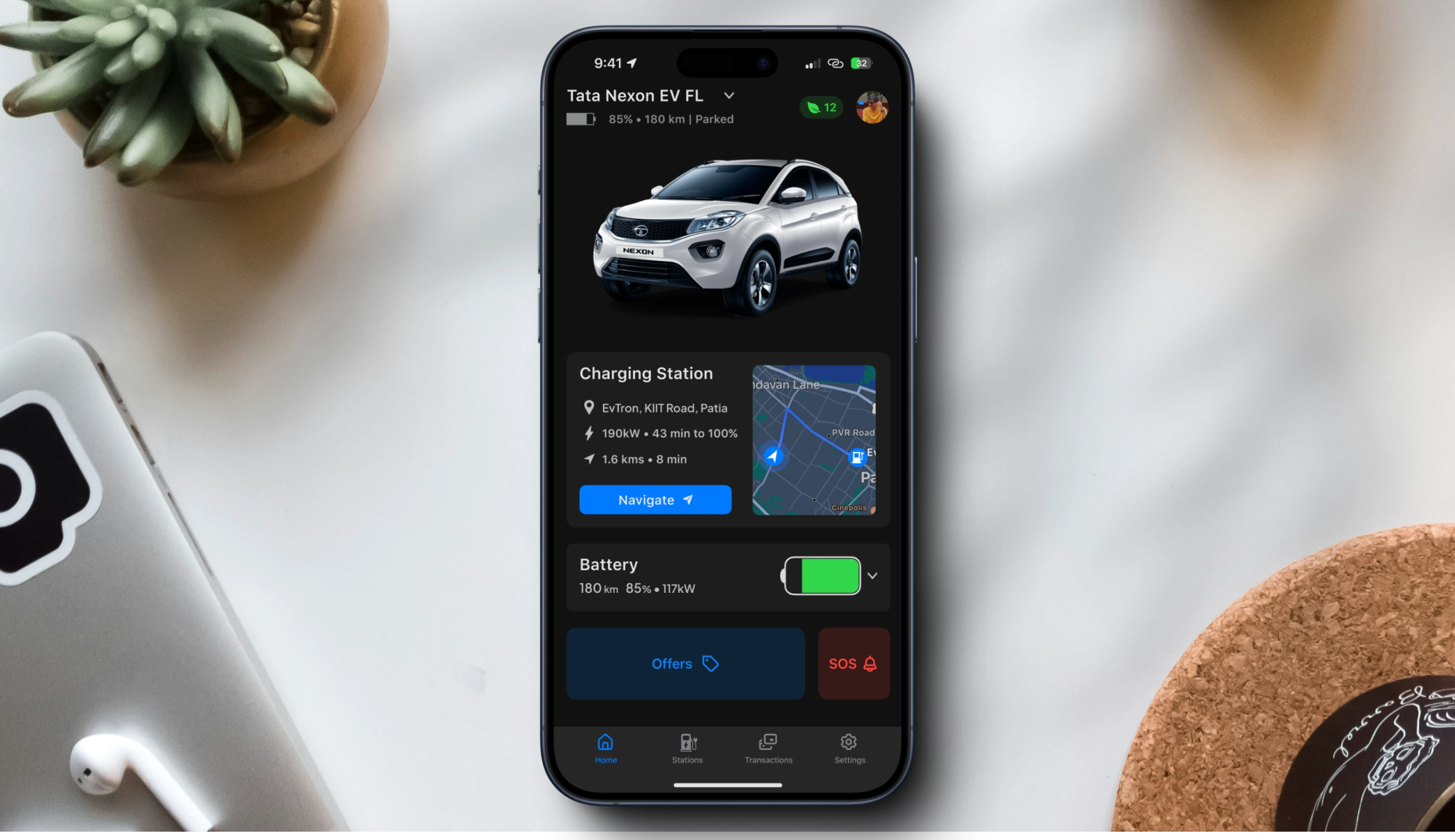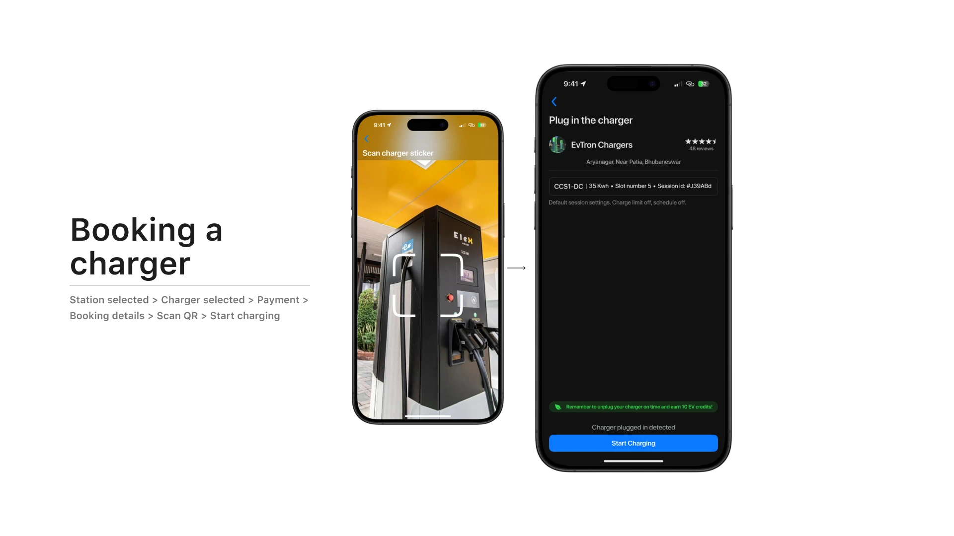Unifying all company-supported chargers at a single EV station, seamlessly integrated through a user-friendly mobile app.