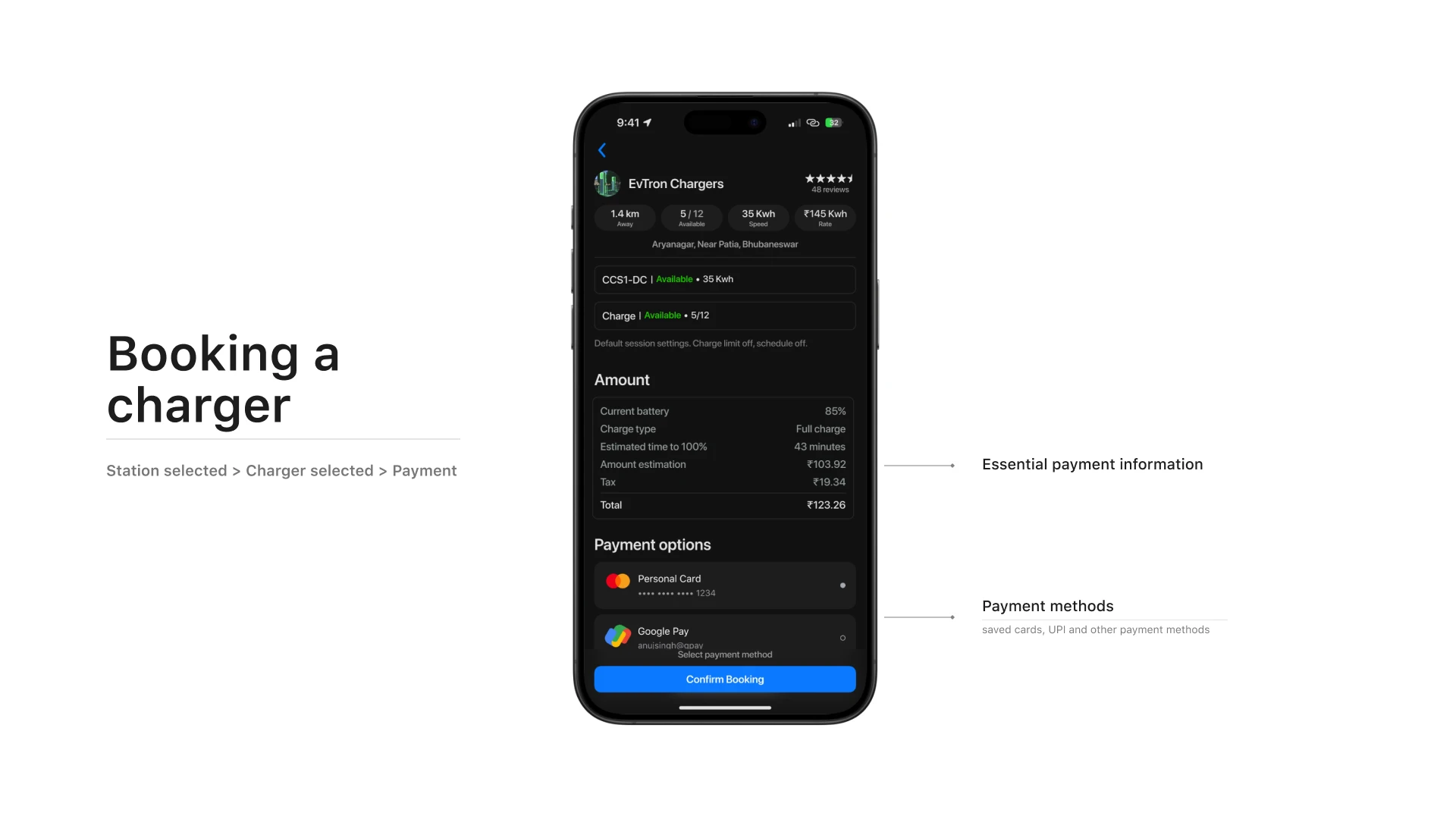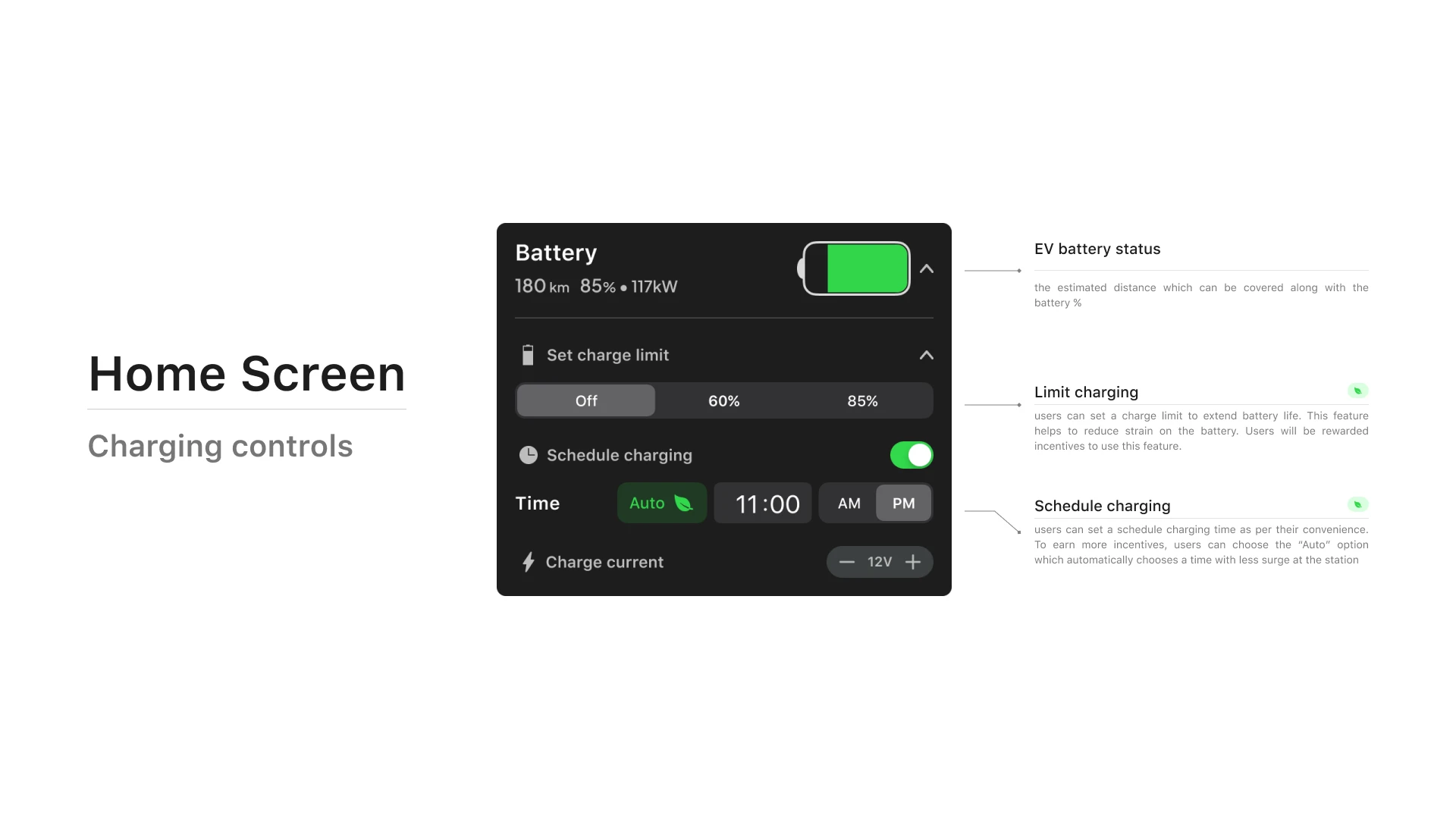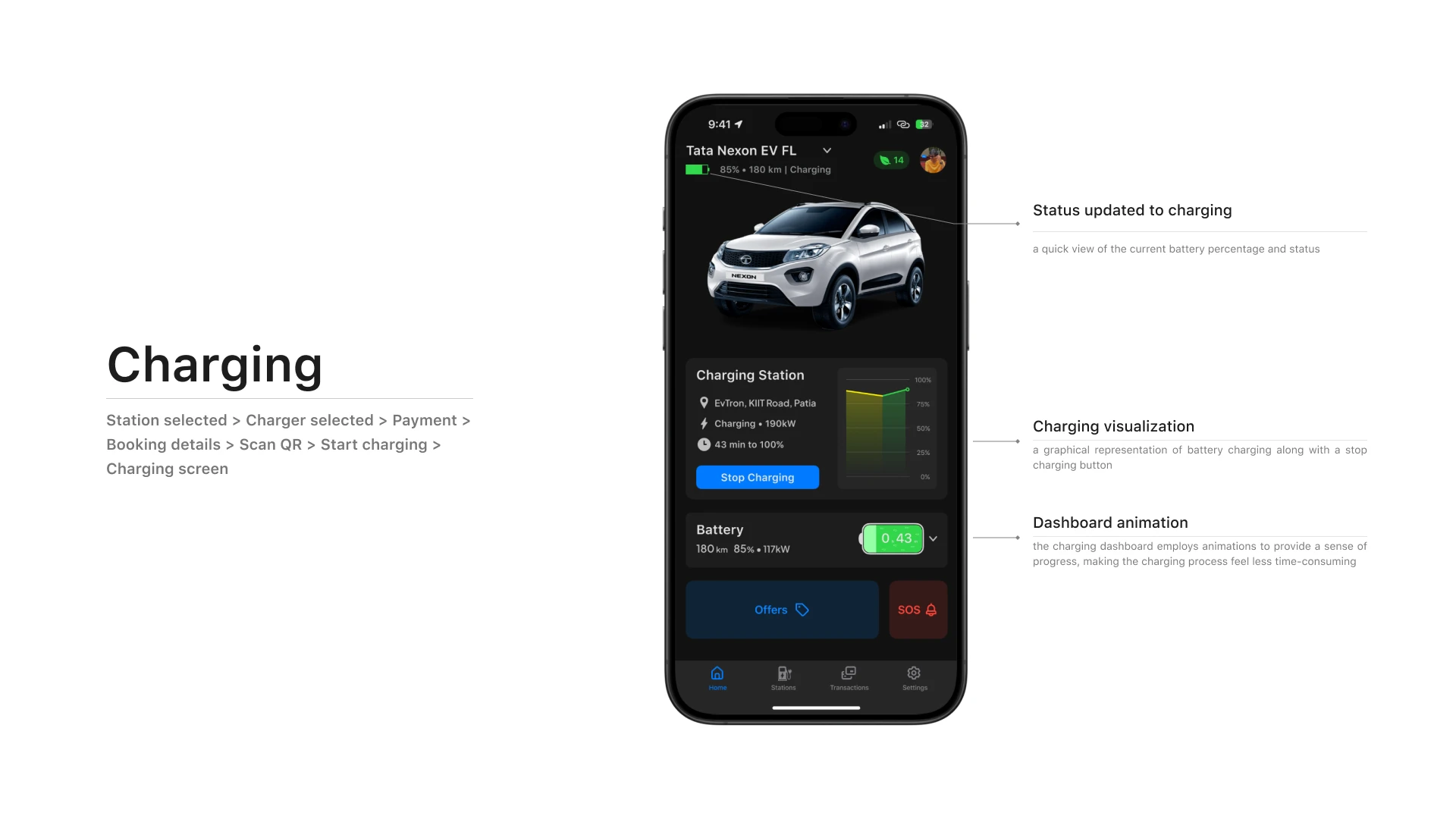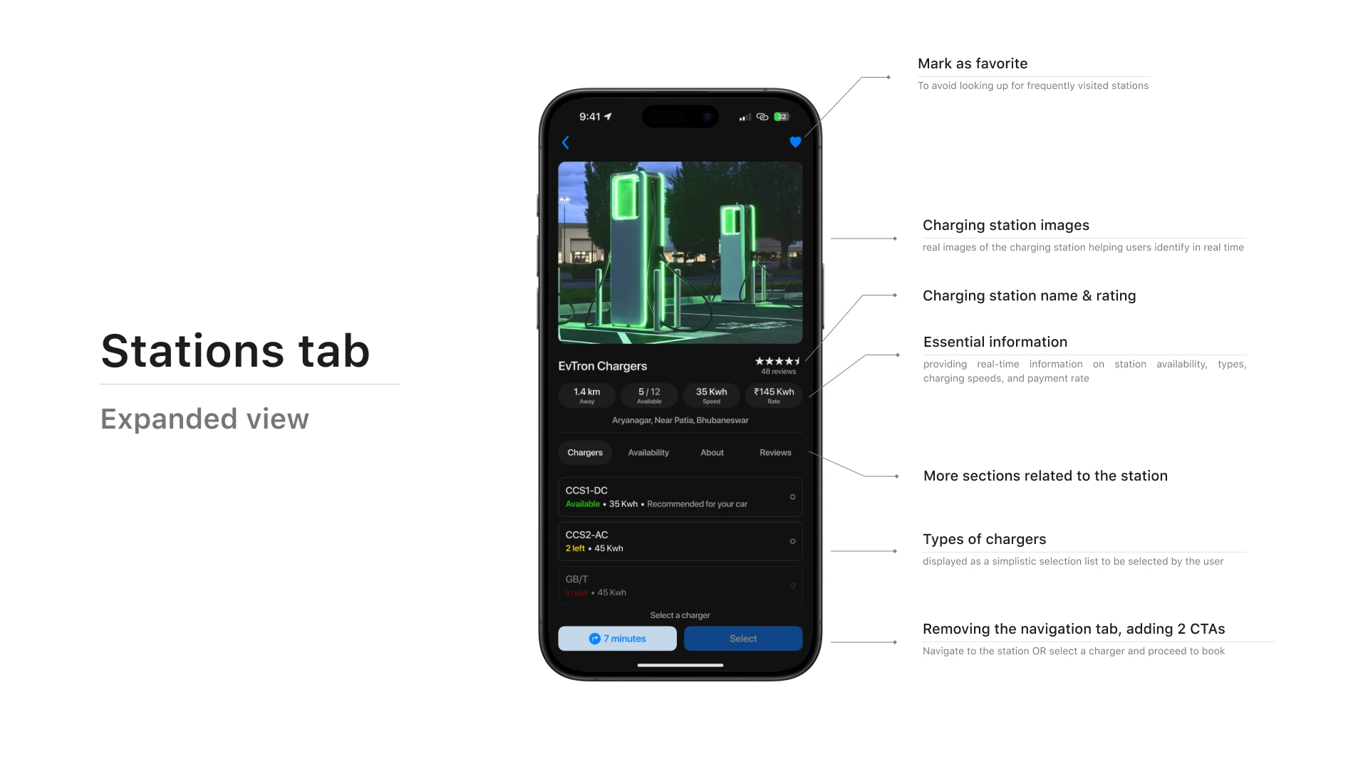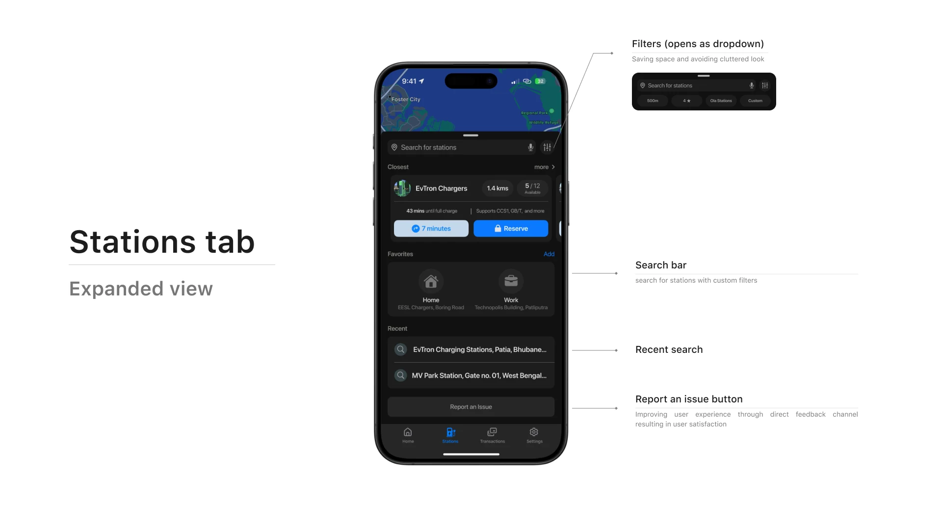 Unifying all company-supported chargers at a single EV station, seamlessly integrated through a user-friendly mobile app.