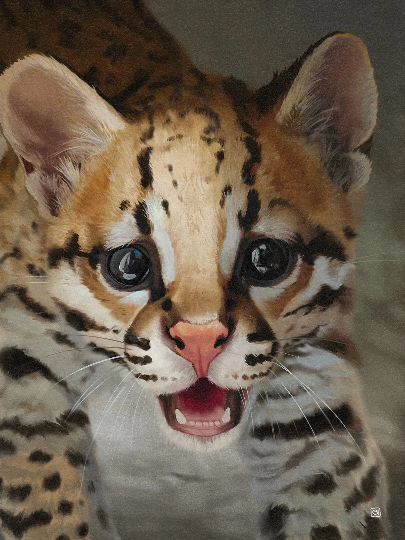This digital painting is inspired by a photograph I captured back in 2020 of a Cunaguaro (ocelot) at Zoológico