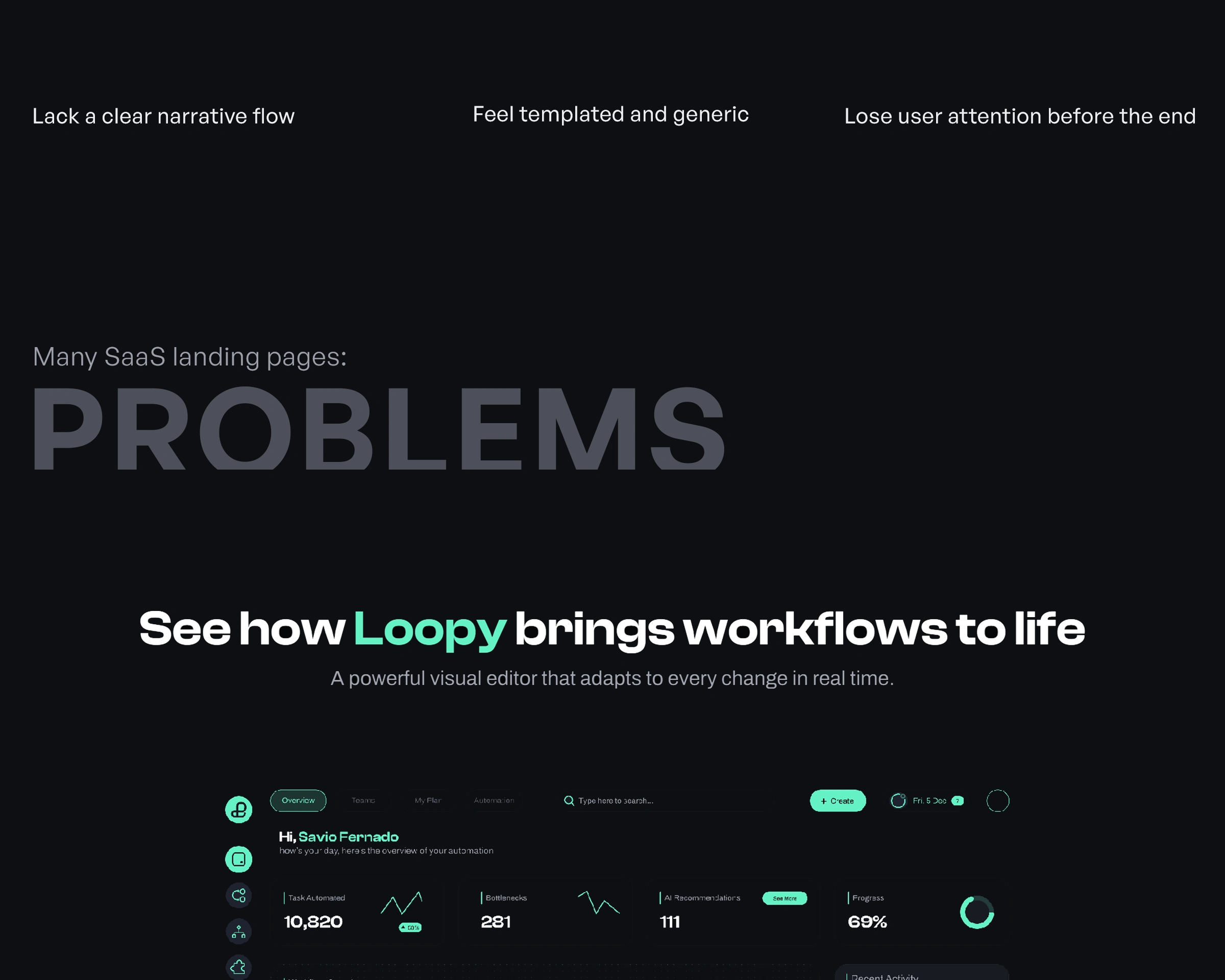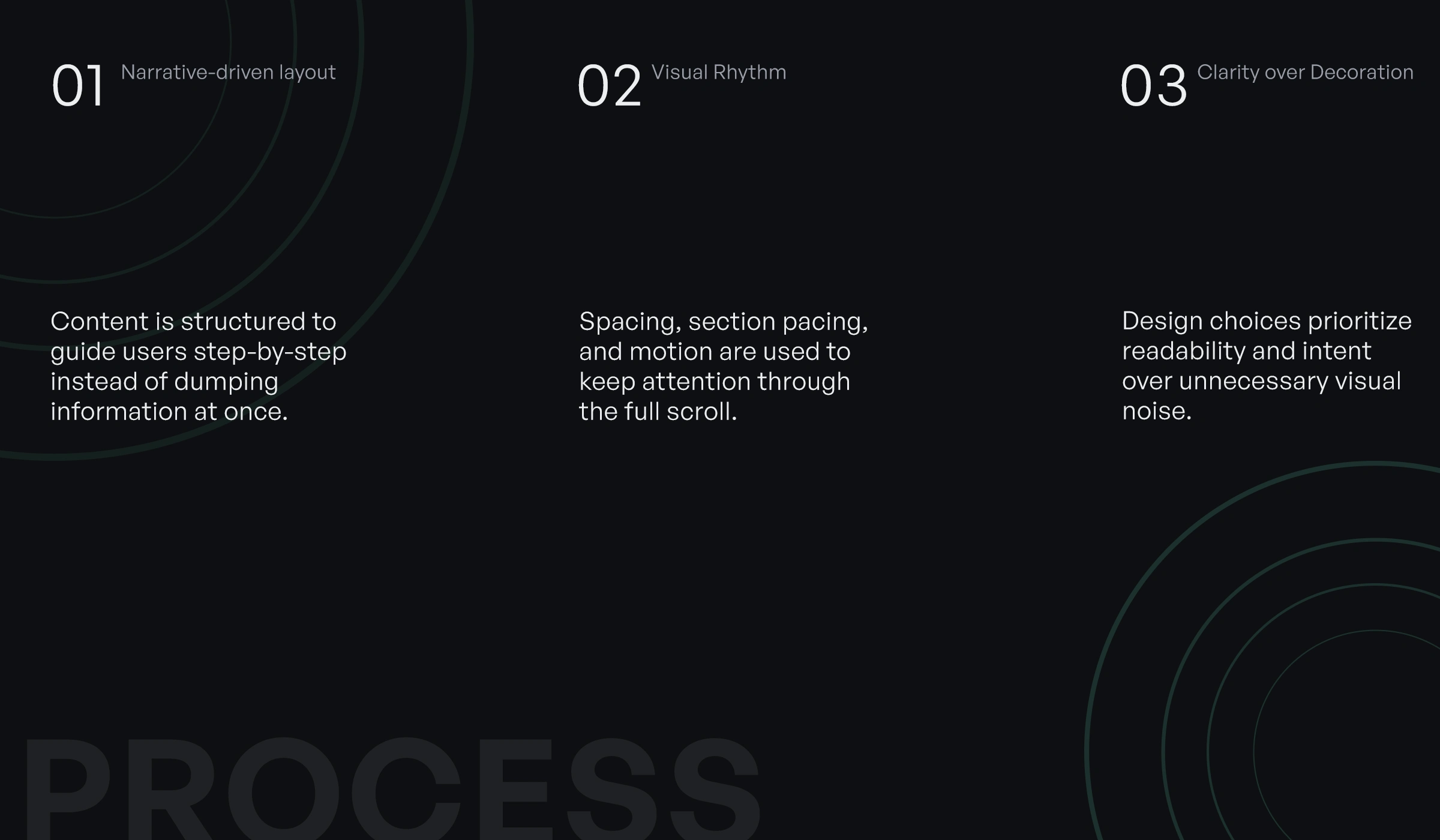 A SaaS landing page concept focused on narrative structure, visual rhythm, and clarity to improve retention and conversion.