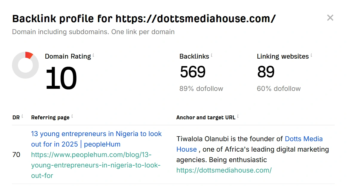 The client, Dotts Media House, was entering the competitive Dubai (UAE) market with a critical handicap: an initial Domain Rating (DR) of 10. This contrasted sharply with established regional competitors, who boasted DRs as high as 78. This vast authority gap resulted in zero organic traffic in the target market and meant a potential Organic Cost Equivalent difference of over $34,100 monthly (as calculated in our initial Gap Analysis, visualized using a Competitive Bar Chart). The challenge was achieving rapid authority acceleration to turn this liability into a digital asset.