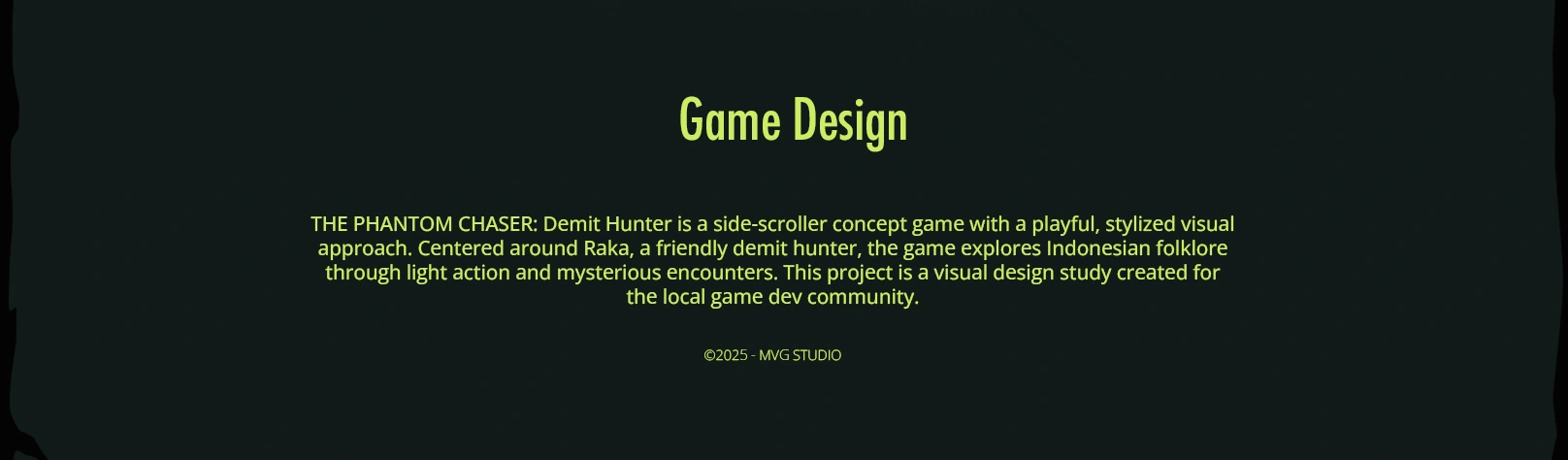 A side-scroller concept game exploring Indonesian folklore through Raka, a friendly demit hunter. A visual study made for the local game dev scene.