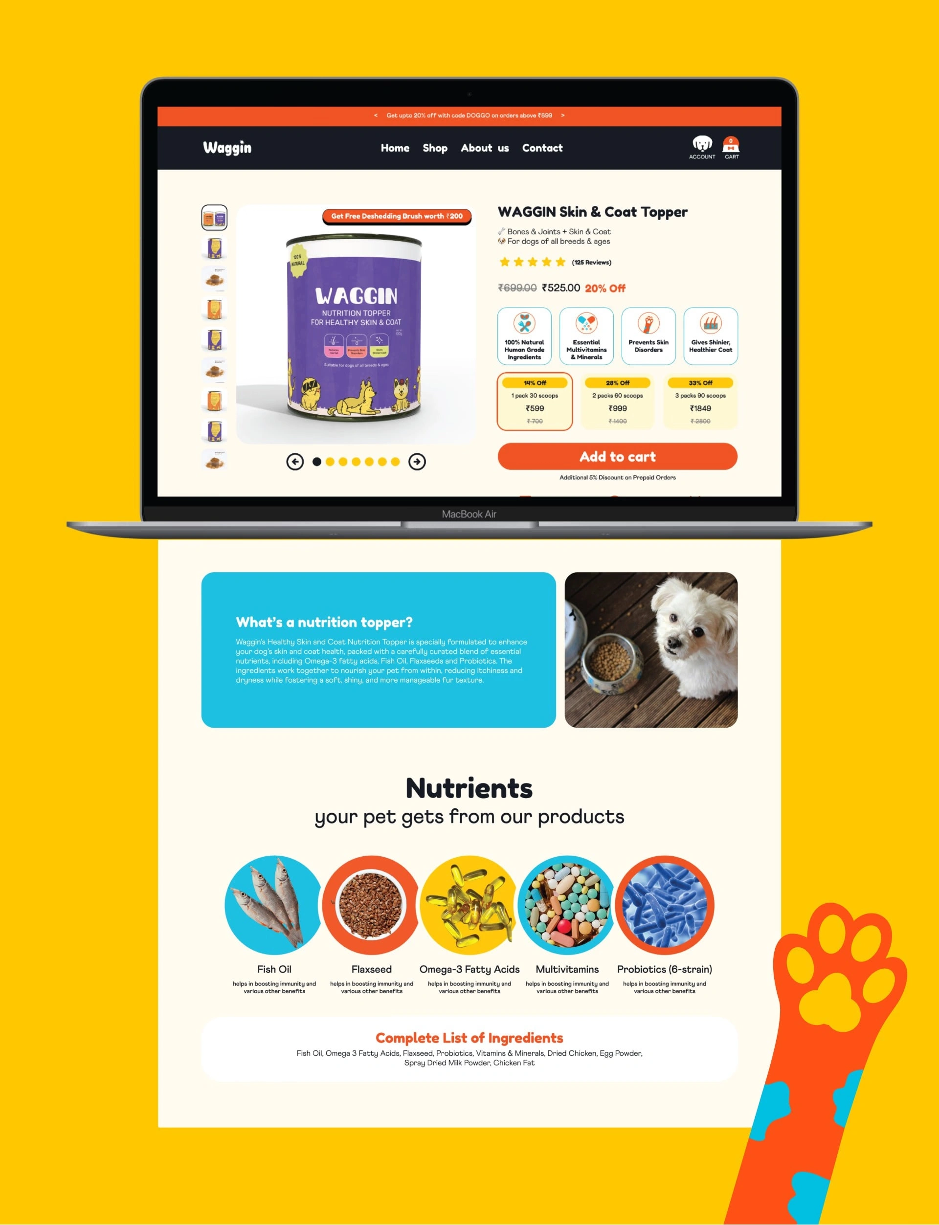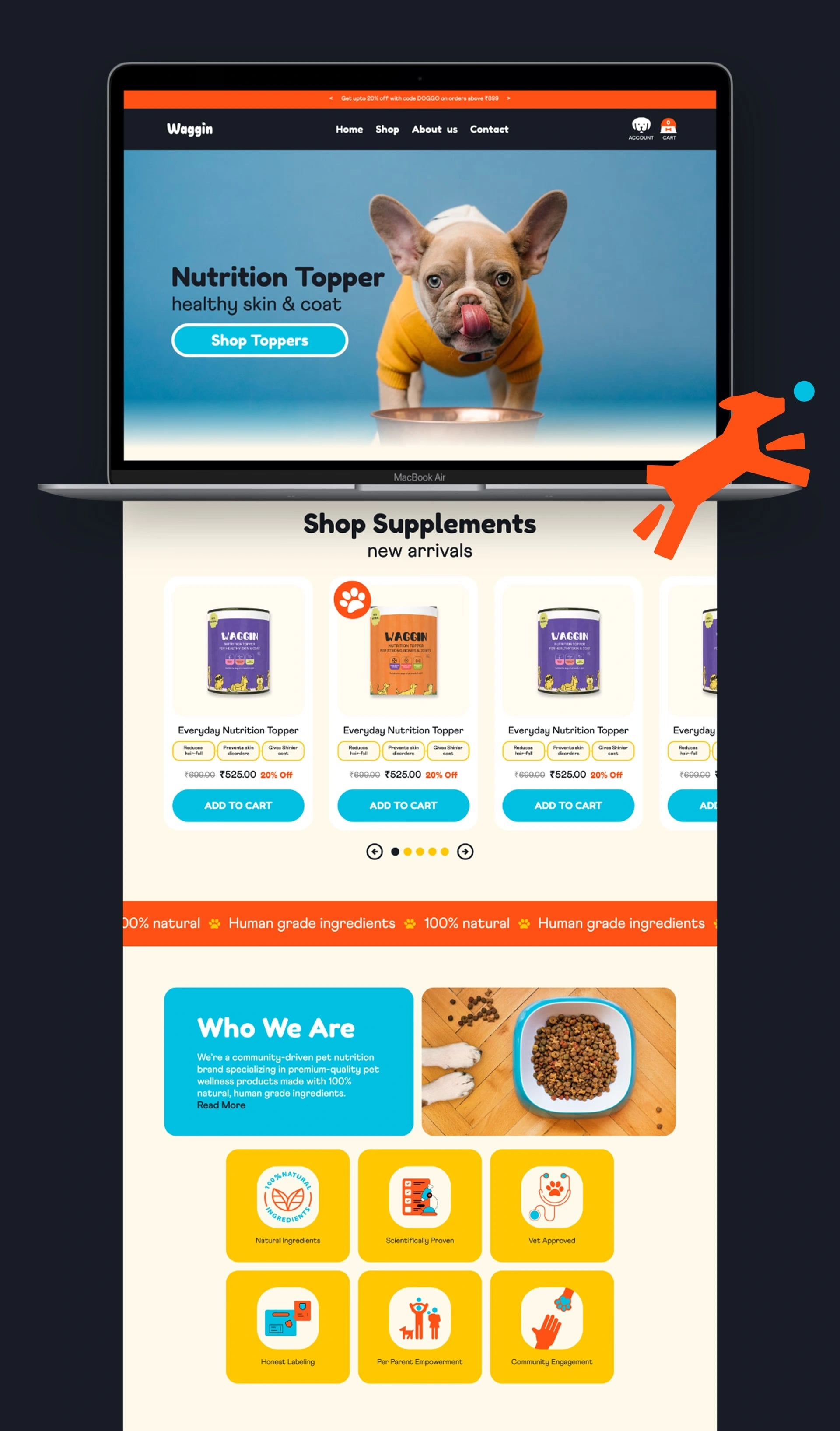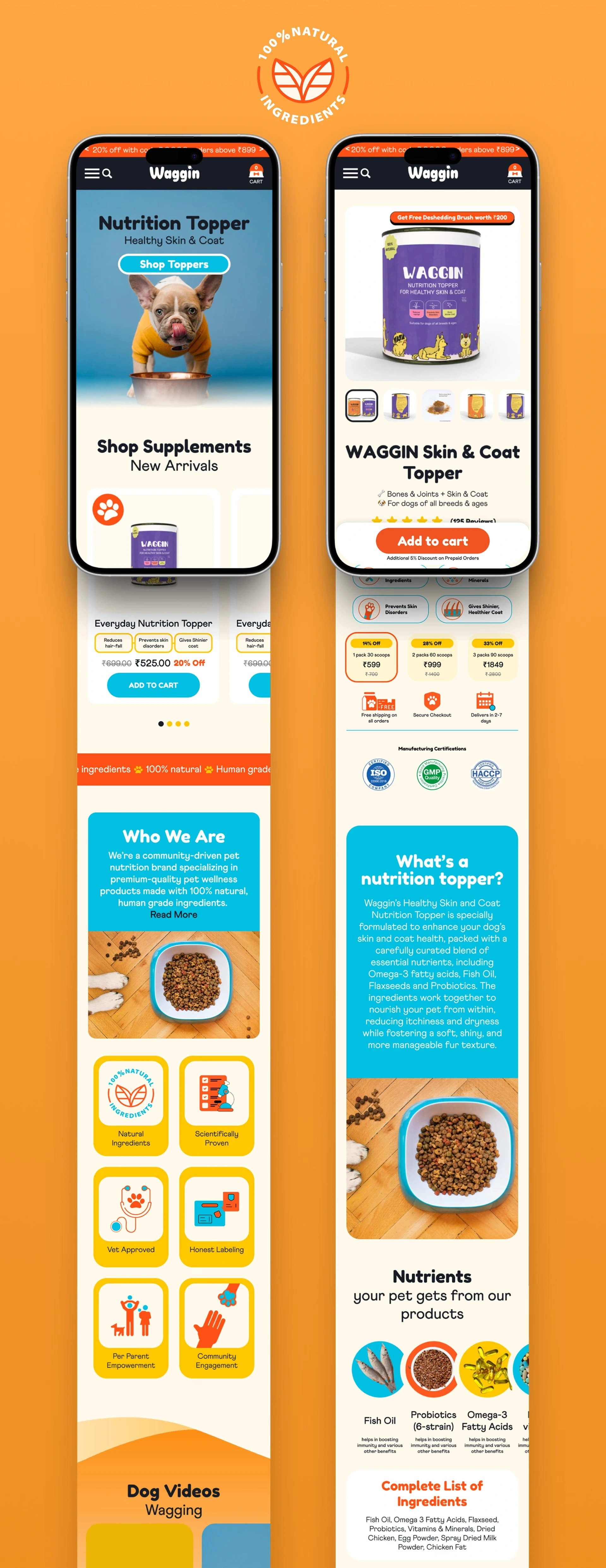We transformed Waggin with a pet-focused, intuitive e-commerce UI/UX, streamlining navigation and creating appealing visuals. The result is a friendly, high-conversion online store trusted by pet parents shopping for quality pet food.