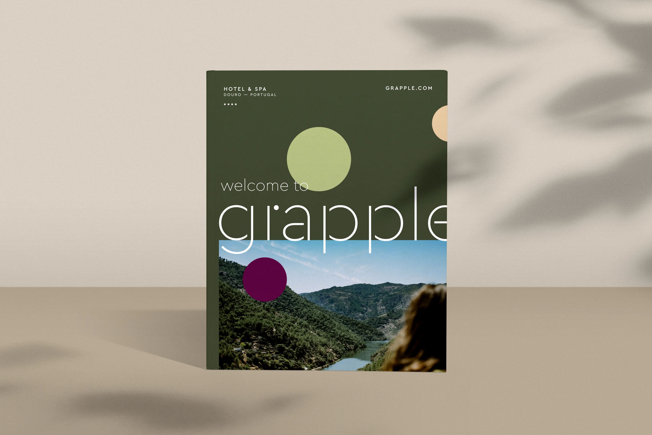 I was commissioned to design the visual identity, signage, and brand materials for grapple hotel — a new 4-star retreat in Portugal’s Douro Valley. The aim was to reflect its elegant, contemporary atmosphere through a cohesive brand experience. Located in the UNESCO-listed Douro Valley, grapple hotel offers 13 rooms, a spa, outdoor leisure areas, and refined gastronomy. Designed by Nini Andrade Silva, with architecture by Daniela Rebelo, it combines sophistication and comfort in a stunning natural setting. Highlights include outdoor and indoor pools, a saltwater kids’ pool, spa facilities, gardens, and an artificial lake.