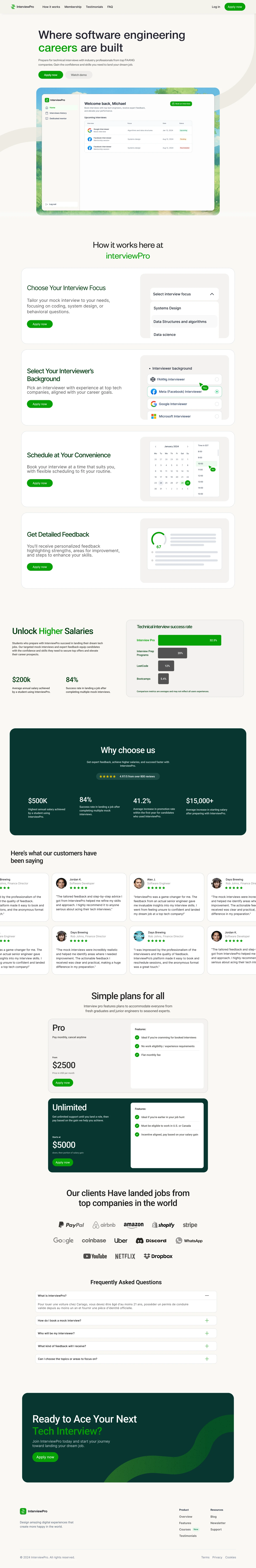 I partnered with InterviewPro to design and build a modern, high-impact digital presence that communicates trust, expertise, and transformative value. The objective was to position InterviewPro as the premier platform for technical interview preparation—instilling confidence in candidates, mentors, and hiring partners alike.