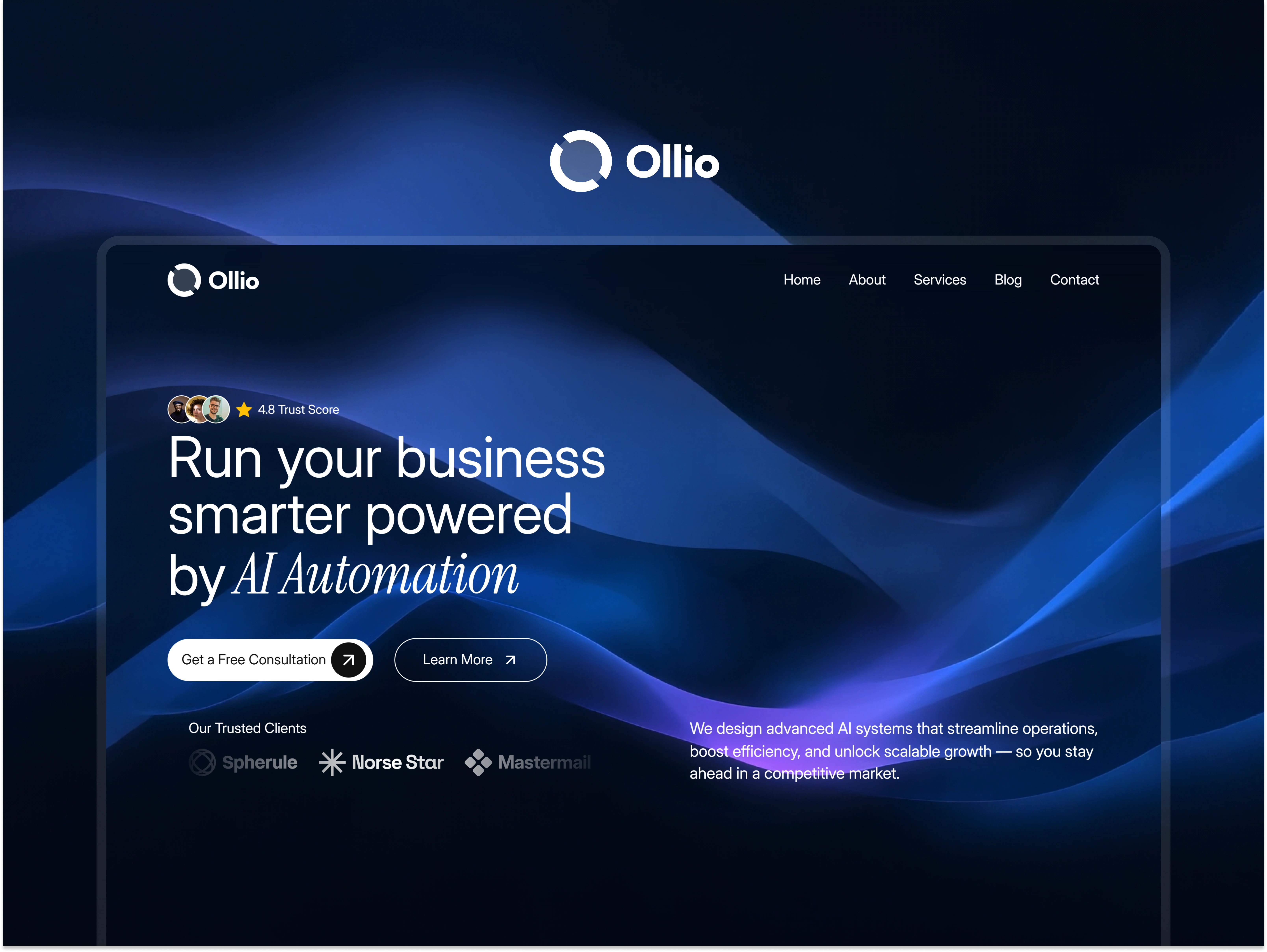 Ollio is a sleek Framer template designed to elevate your agency's aesthetic with modern design and Subtle animations.