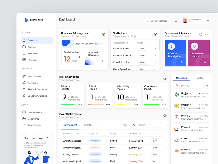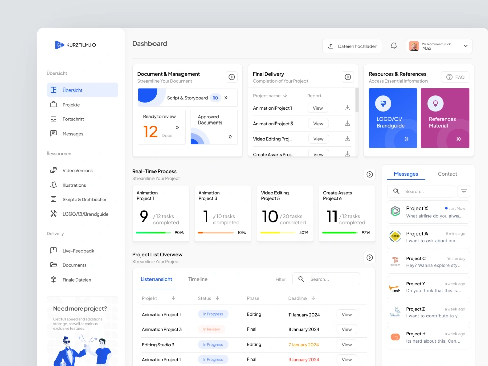 Kurzfilm.io is a SaaS platform designed specifically for animation studios. It offers a seamless way to manage white label animation videos, organize and collaborate with your team, and streamline the entire production process. Whether you’re handling multiple projects or working with various teams,