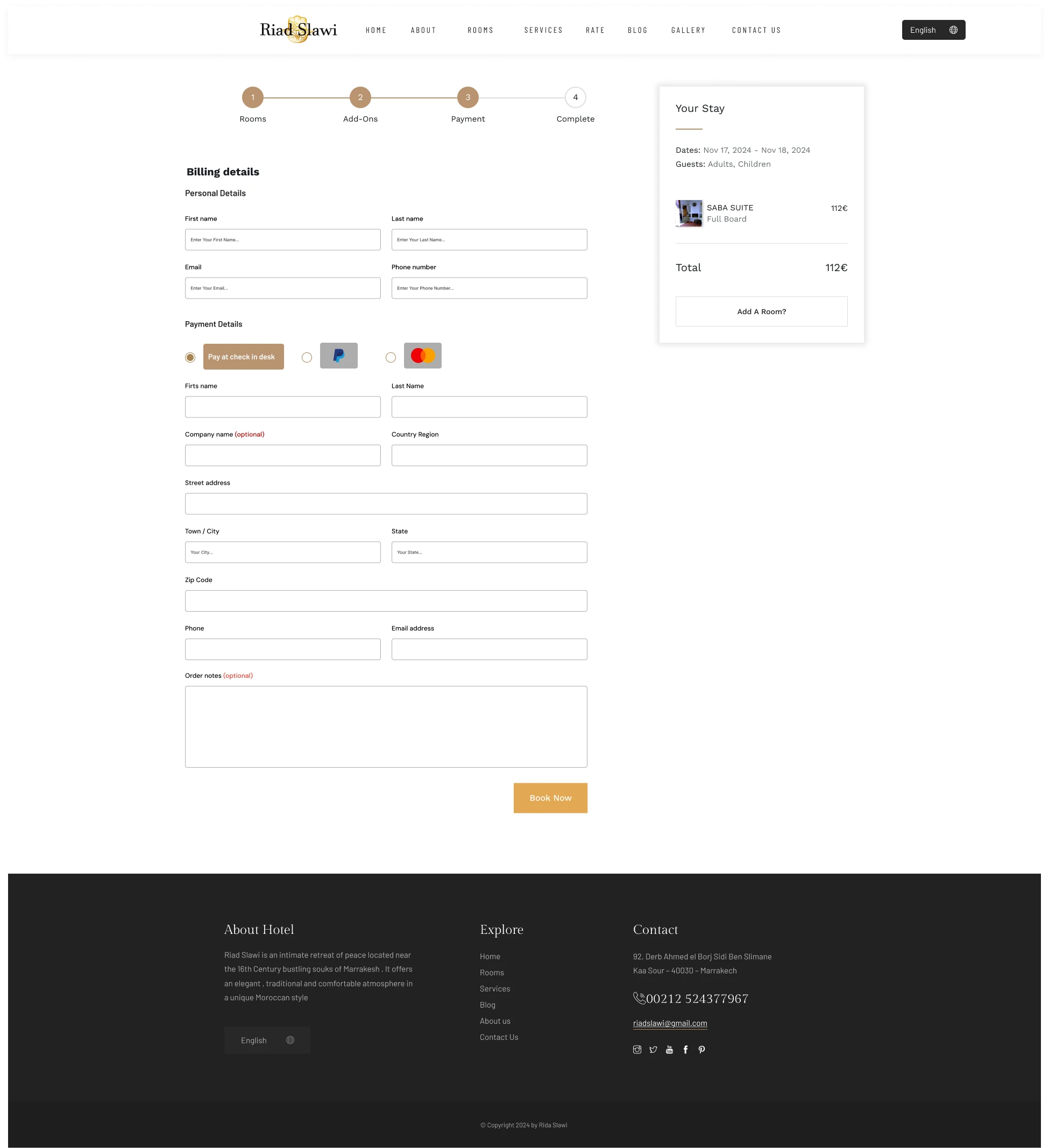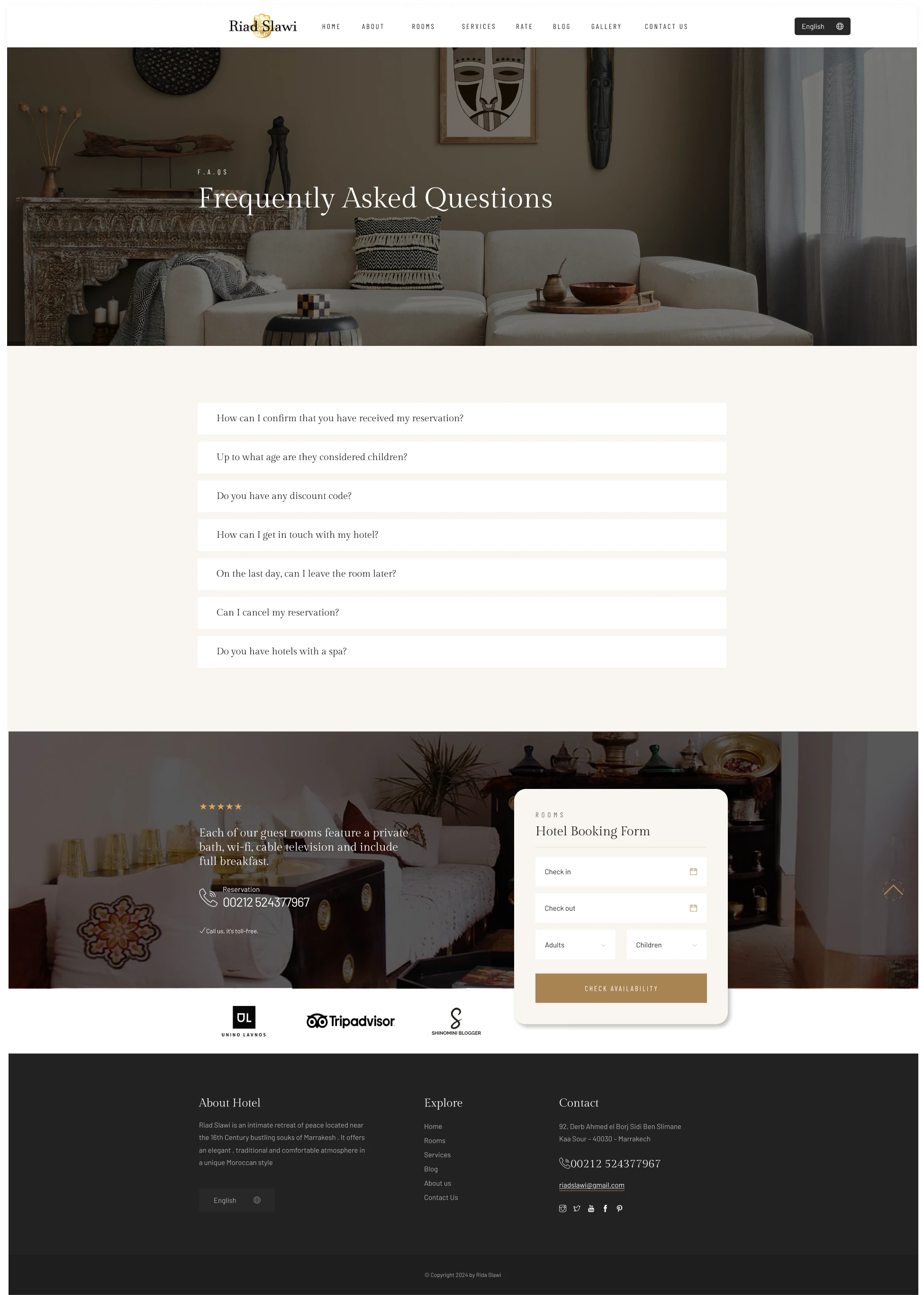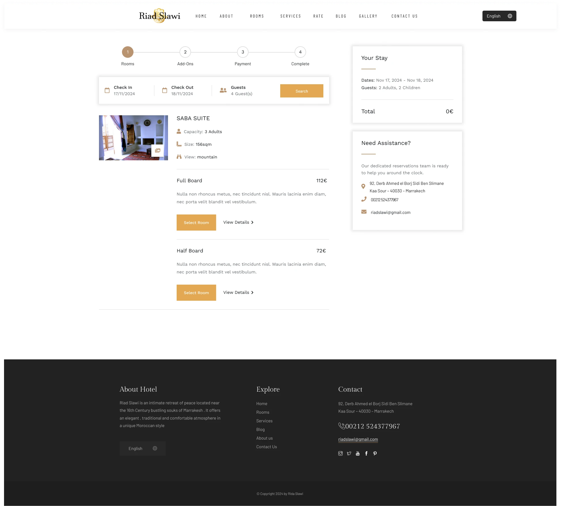 Riad Slawi Website for Moroccan Client in Marrakech for booking Rooms
