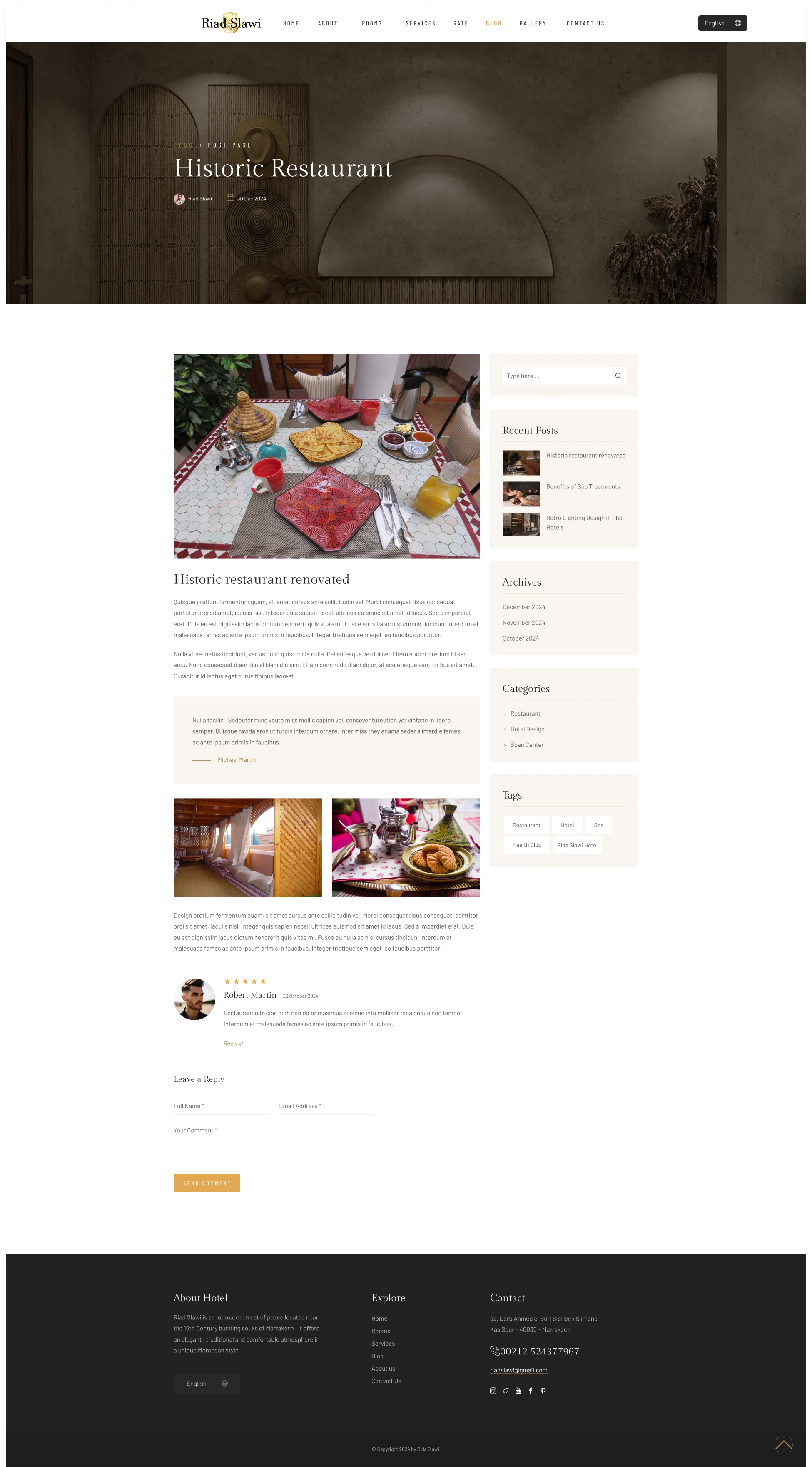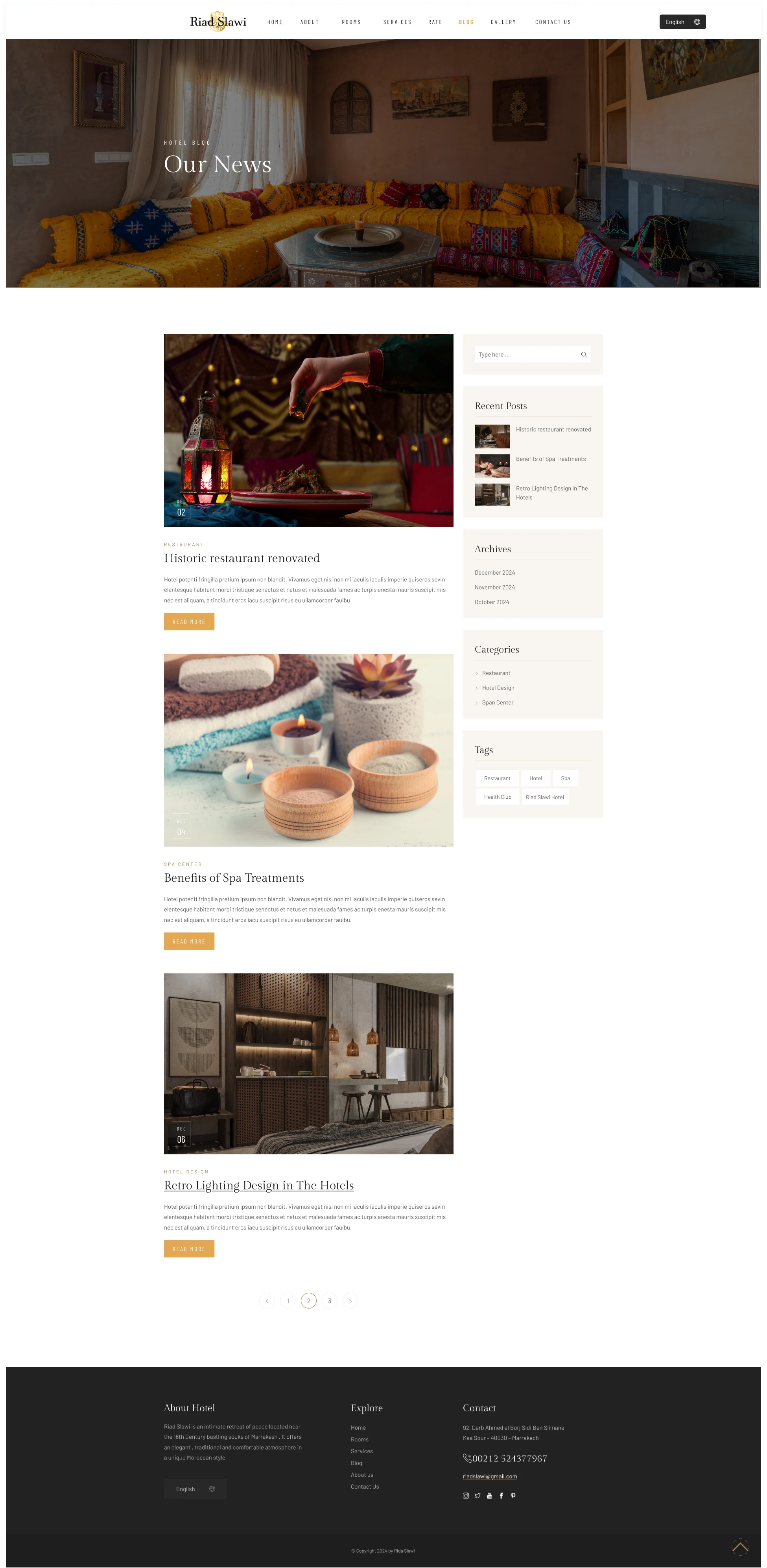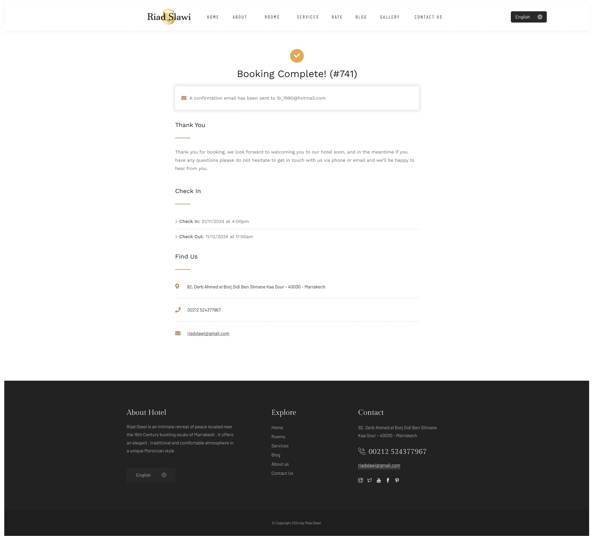 Riad Slawi Website for Moroccan Client in Marrakech for booking Rooms