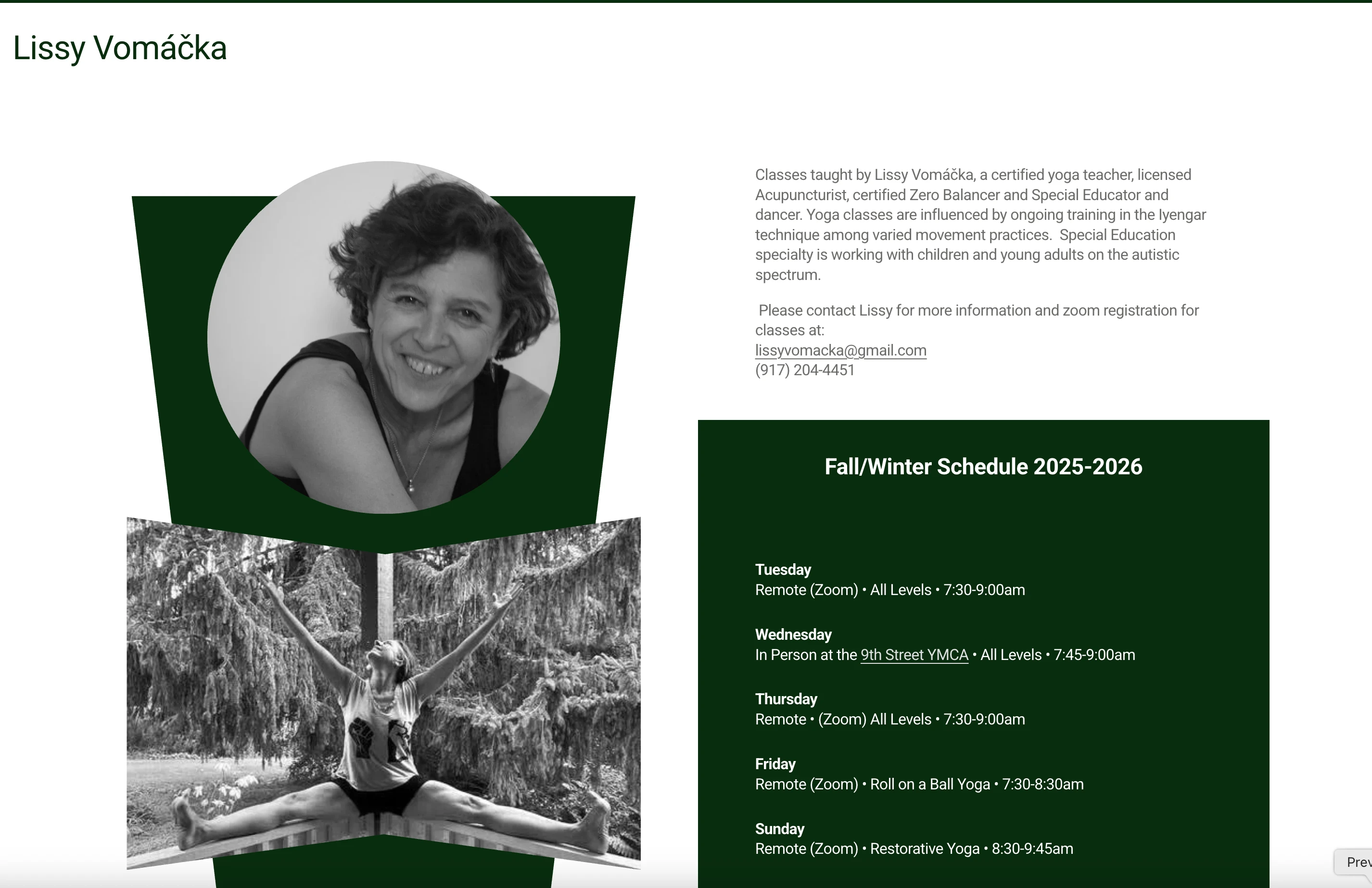 Lissy needed a clean and creative Squarespace website to promote her classes and upcoming retreats. I worked with Lissy to understand her vision, goals, and aesthetic preferences and created a site that she was excited to share with her audience.