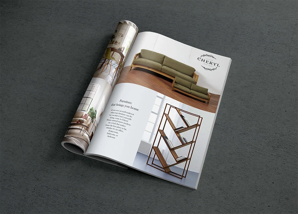 I designed a natural, minimalistic, high-end logo, website, magazine spread, and signage for Cheryl artisan furniture boutique.
