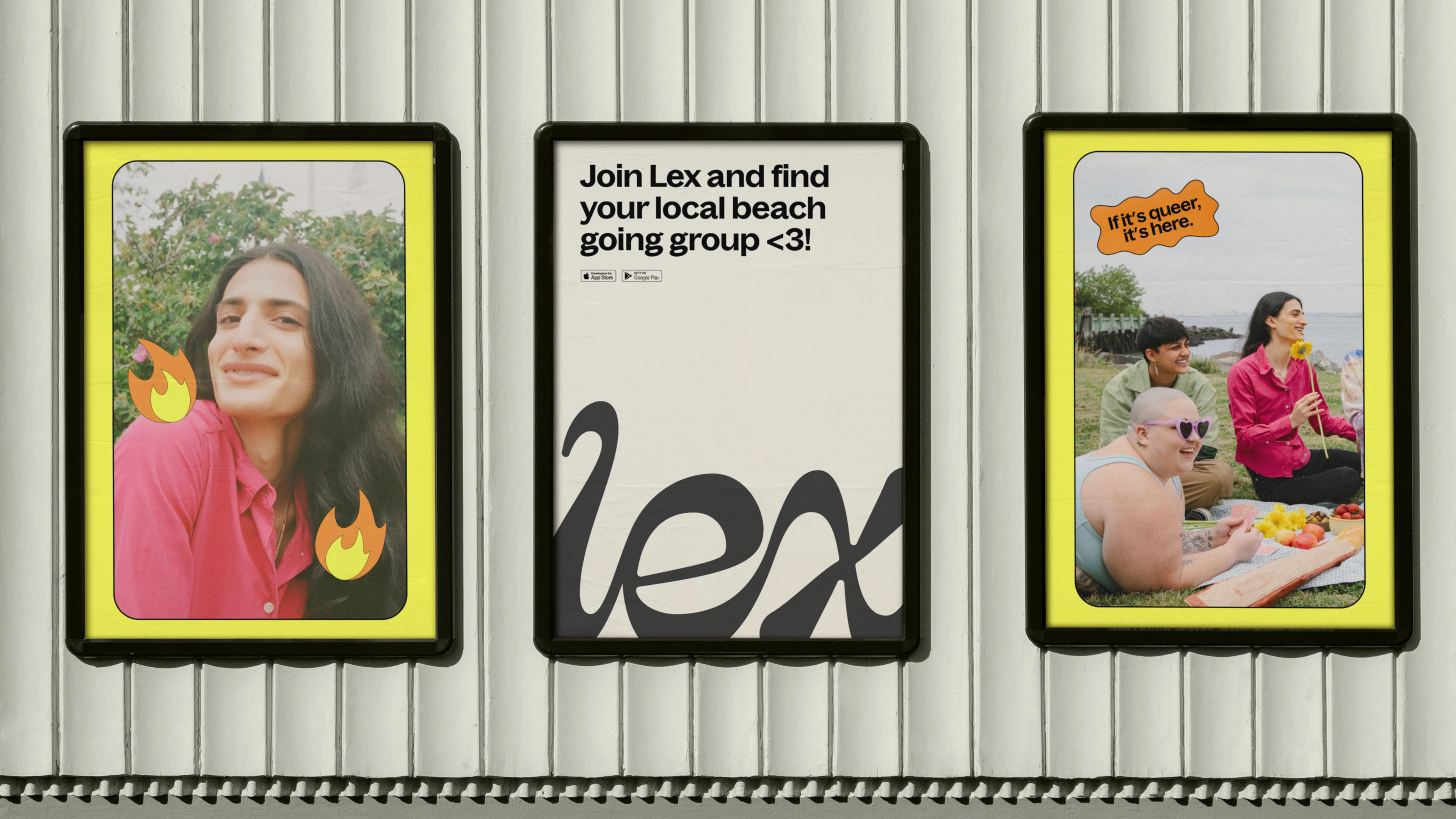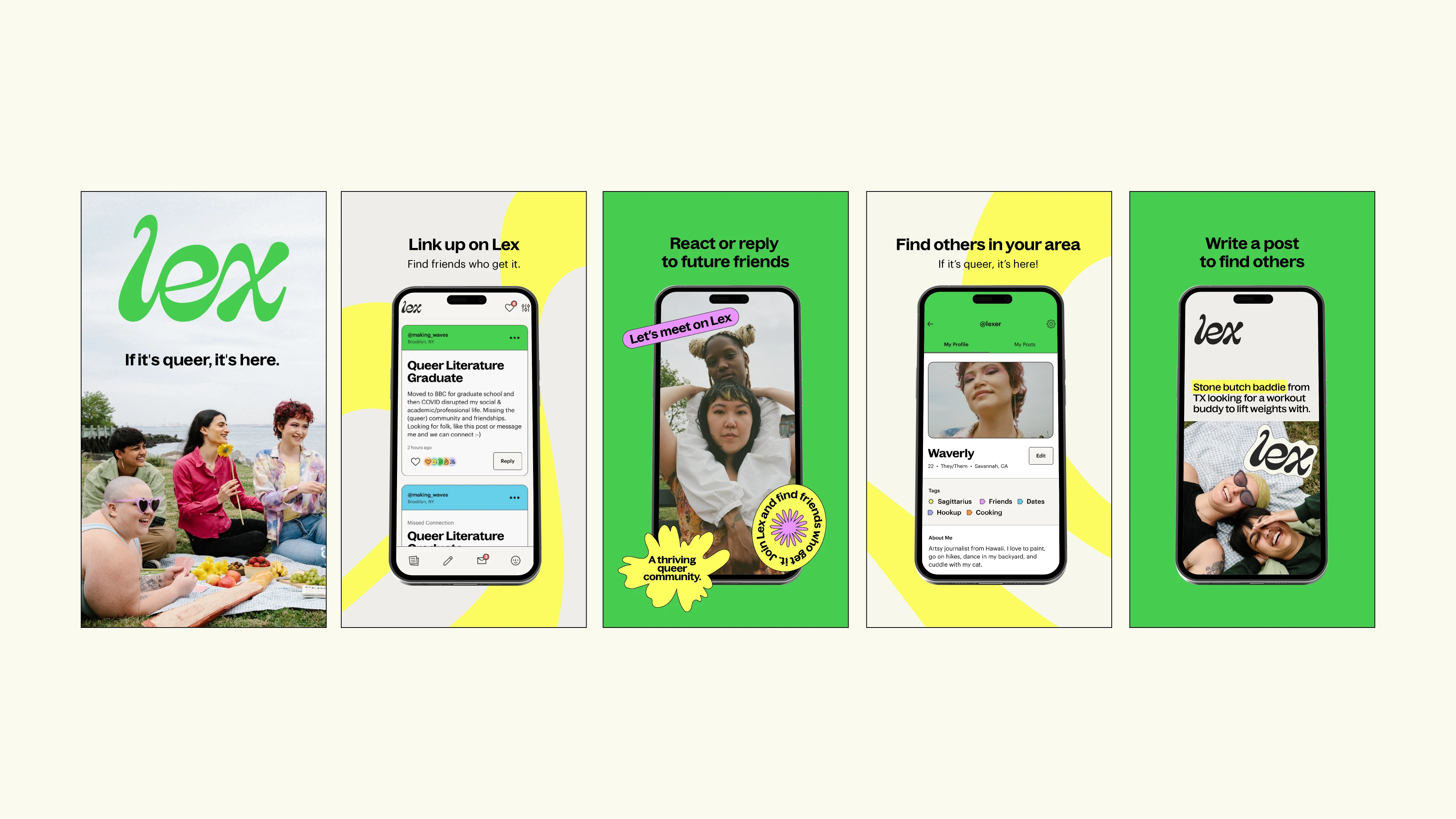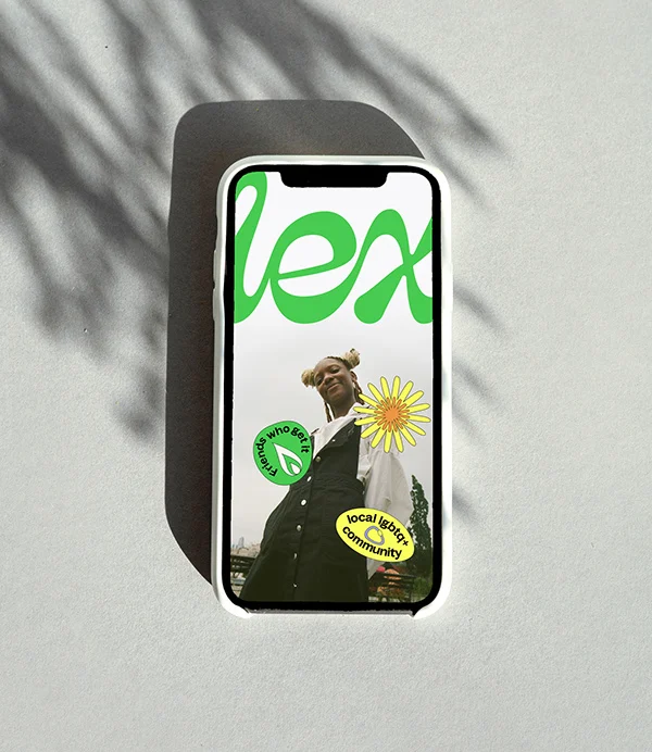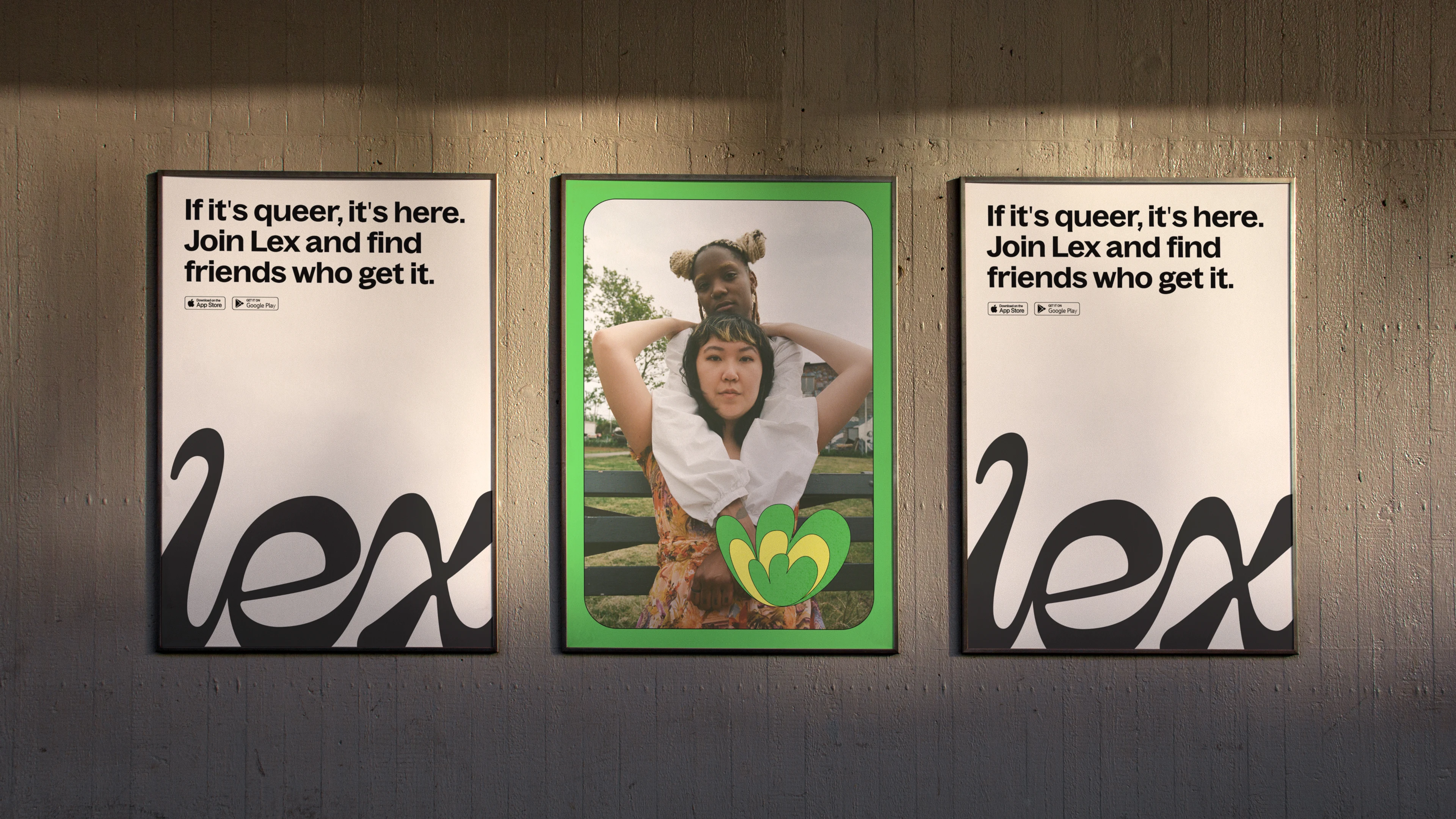 Lex is a welcoming space for LGBTQIA+ people to build relationships, queer community, and connection through conversation and expression. If it’s queer, it’s on Lex. Lex came to us for a rebrand to help them move from being perceived as a queer space for romantic relationships towards a queer space for platonic relationships.