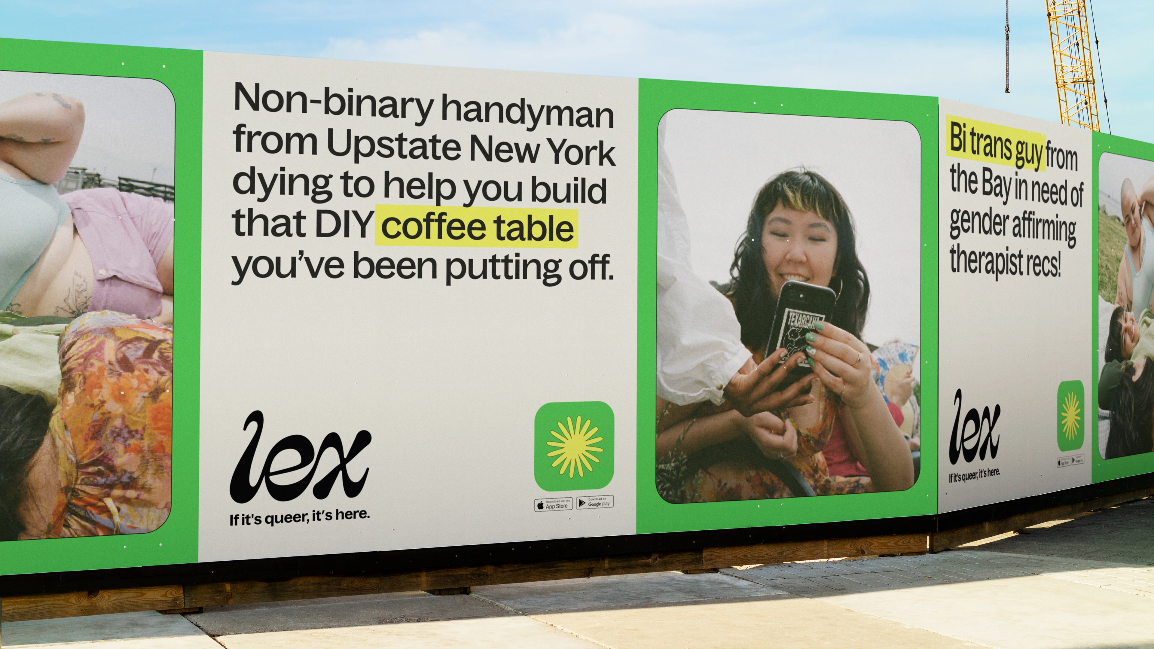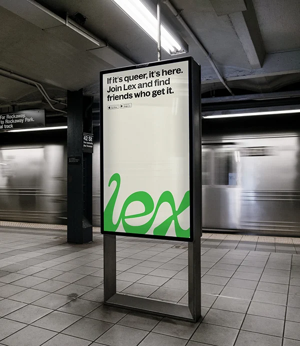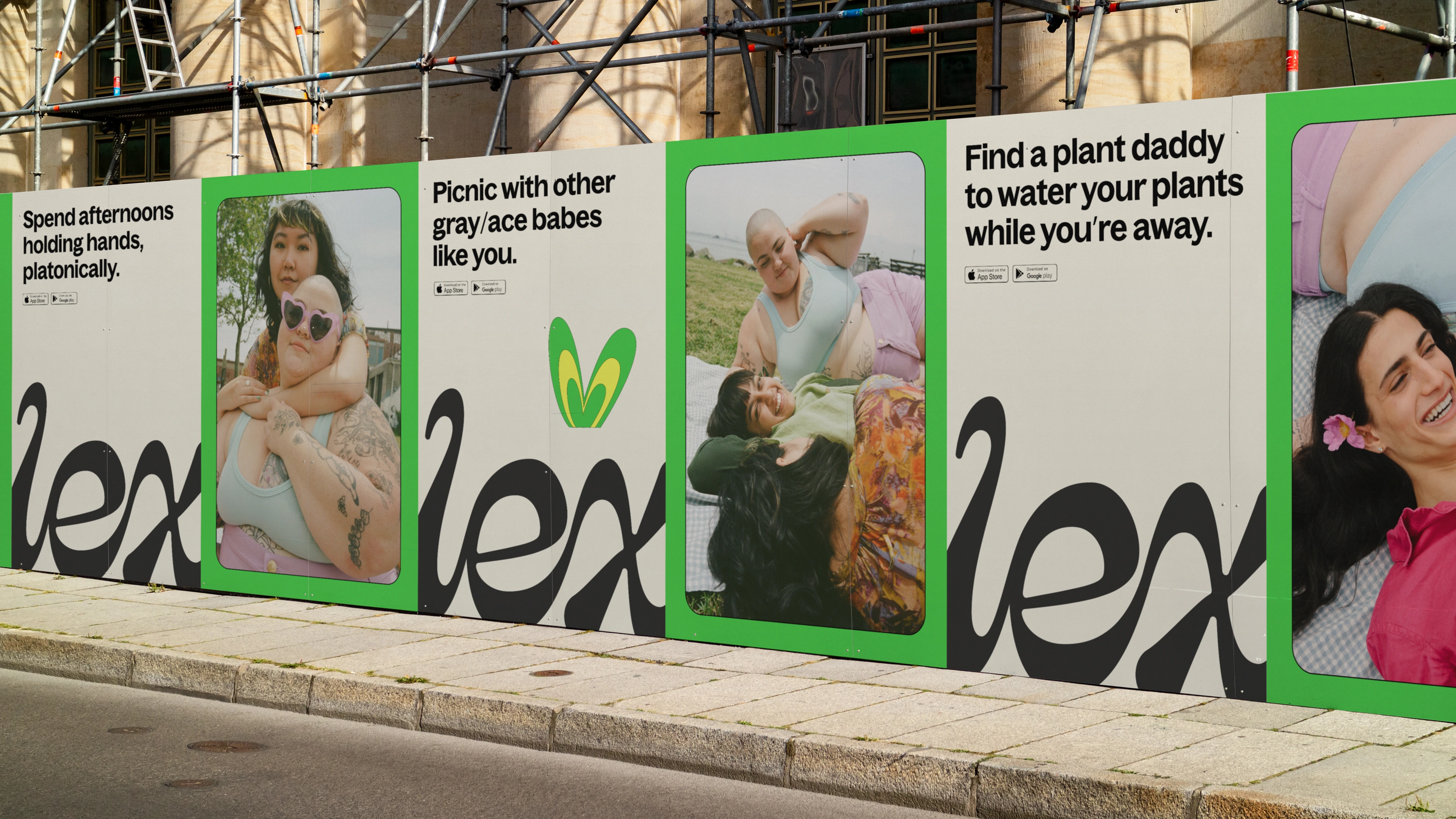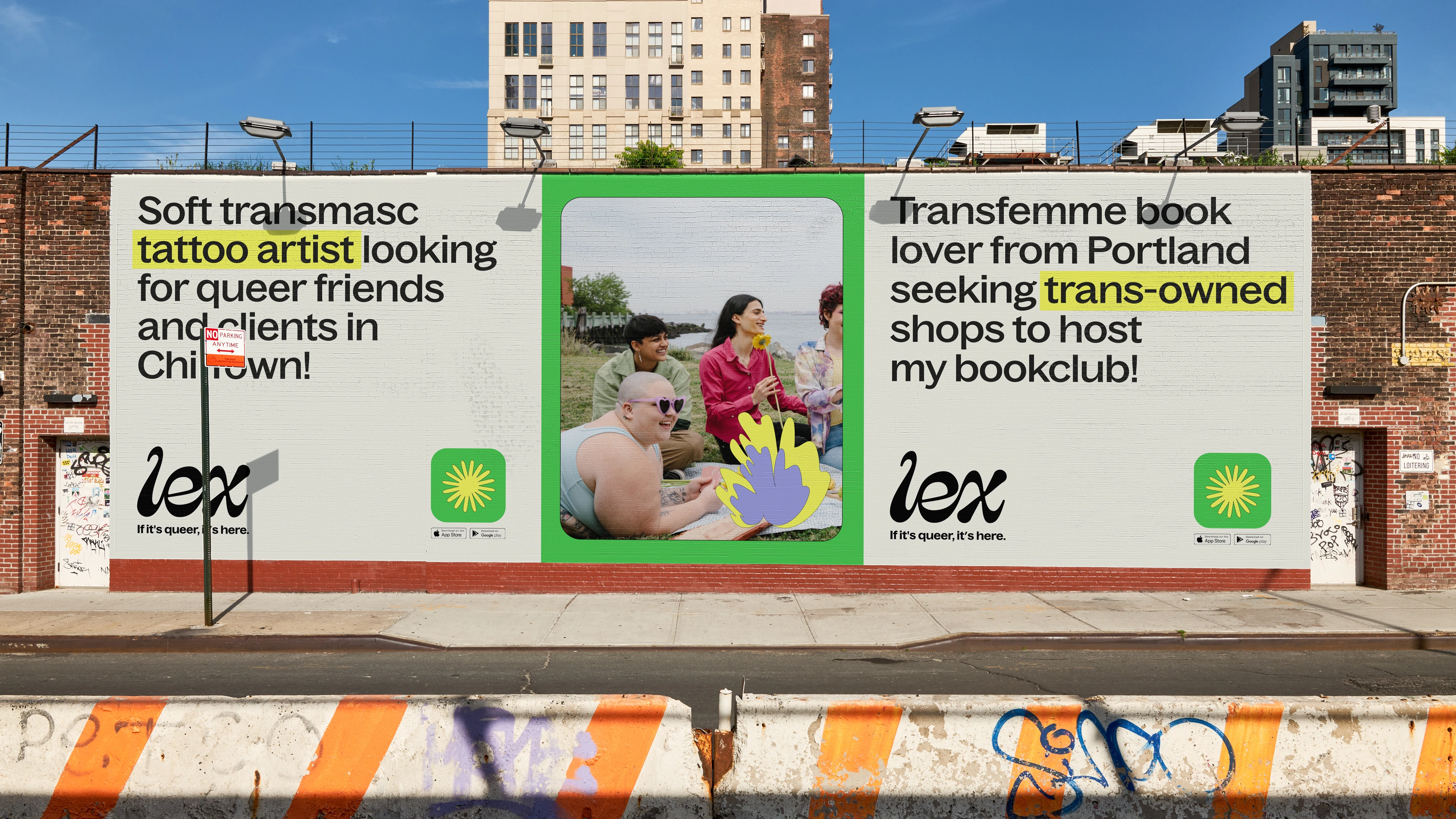 Lex is a welcoming space for LGBTQIA+ people to build relationships, queer community, and connection through conversation and expression. If it’s queer, it’s on Lex. Lex came to us for a rebrand to help them move from being perceived as a queer space for romantic relationships towards a queer space for platonic relationships.