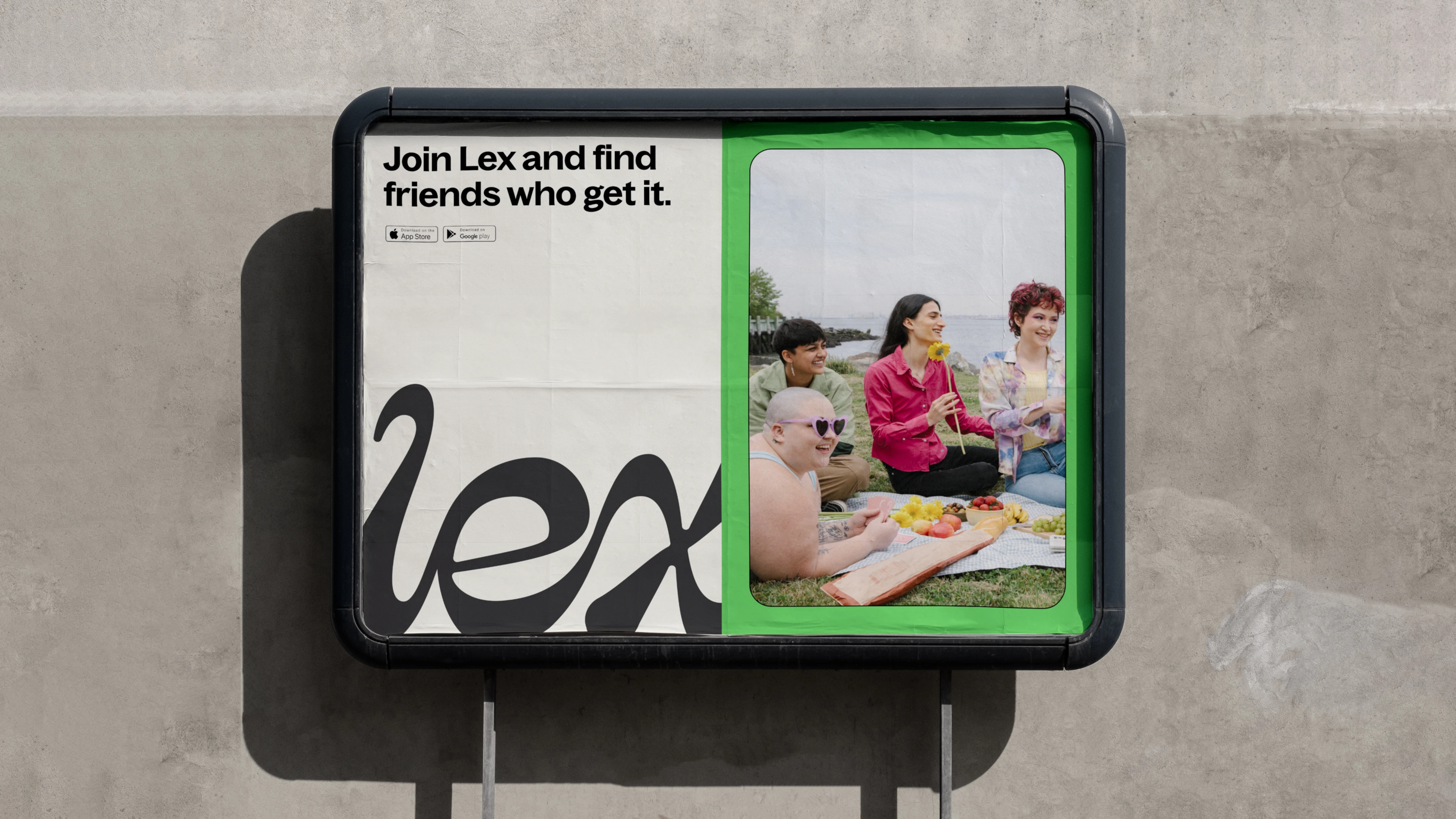 We retained the Lex photography but added a rounded-edge frame treatment to strengthen the sense of warmth and platonic intimacy present in each scene.