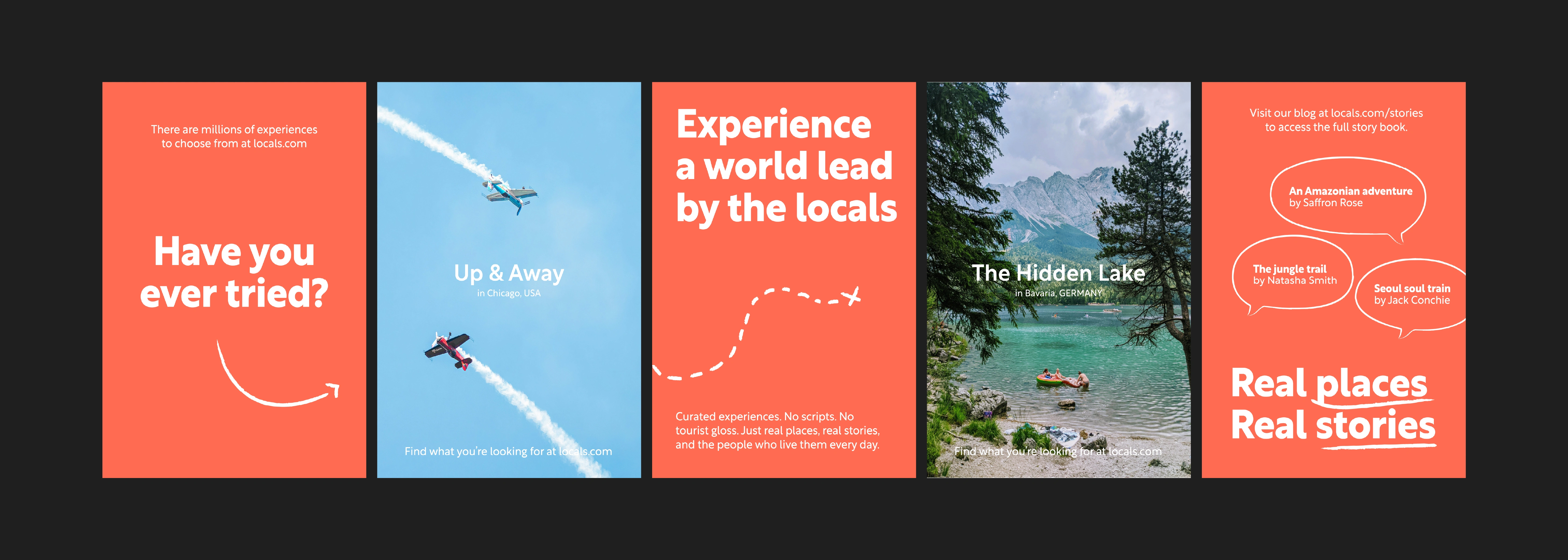 Travel like locals do. Guided adventures, local cuisines, genuine experiences. The Locals identity needed to put experiences and the local guides at the forefront of its branding. Strong values of authenticity, adventure, and approachability needed to shine through within a modern identity.