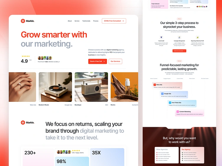 Marklo is a modern and conversion-focused landing page crafted for digital marketing agencies, SEO service providers, and growth-focused startups. The design features a clean layout, bold typography, and engaging visuals that highlight services, case studies, and results to boost trust and conversions. Built with a strategic structure and strong call-to-actions, it helps businesses turn visitors into clients effortlessly.