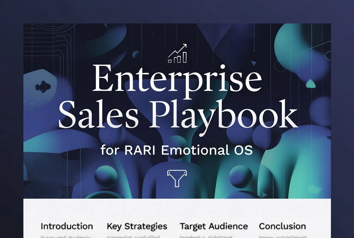 This isn't just a manual; it's a narrative-driven asset that positions Emotional OS as essential infrastructure for the "new enterprise", where cognitive and emotional alignment drives uncopyable advantages in loyalty, retention, and multisensory experiences. Designed for long-cycle B2B sales, it helps sellers engage CEOs, CXOs, CPOs, and Heads of Innovation on their terms: focusing on sustainable growth, emotional resonance, and future-proofing in a post-personalization era.