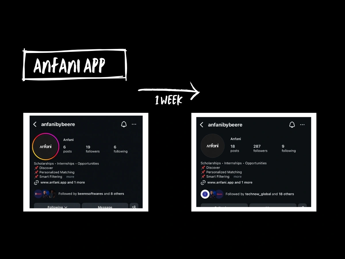 Built Anfani’s brand identity, grew visibility by 60%, gained 29K views & 300 followers in 2 weeks, and positioned it as a trusted opportunity-tracking app.
