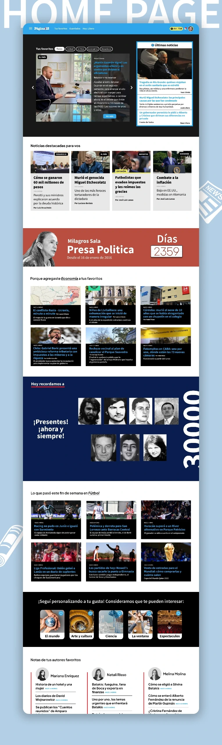 Personalized user experience, they can easily find news on topics they're interested in, all while keeping Página|12's unique political identity.