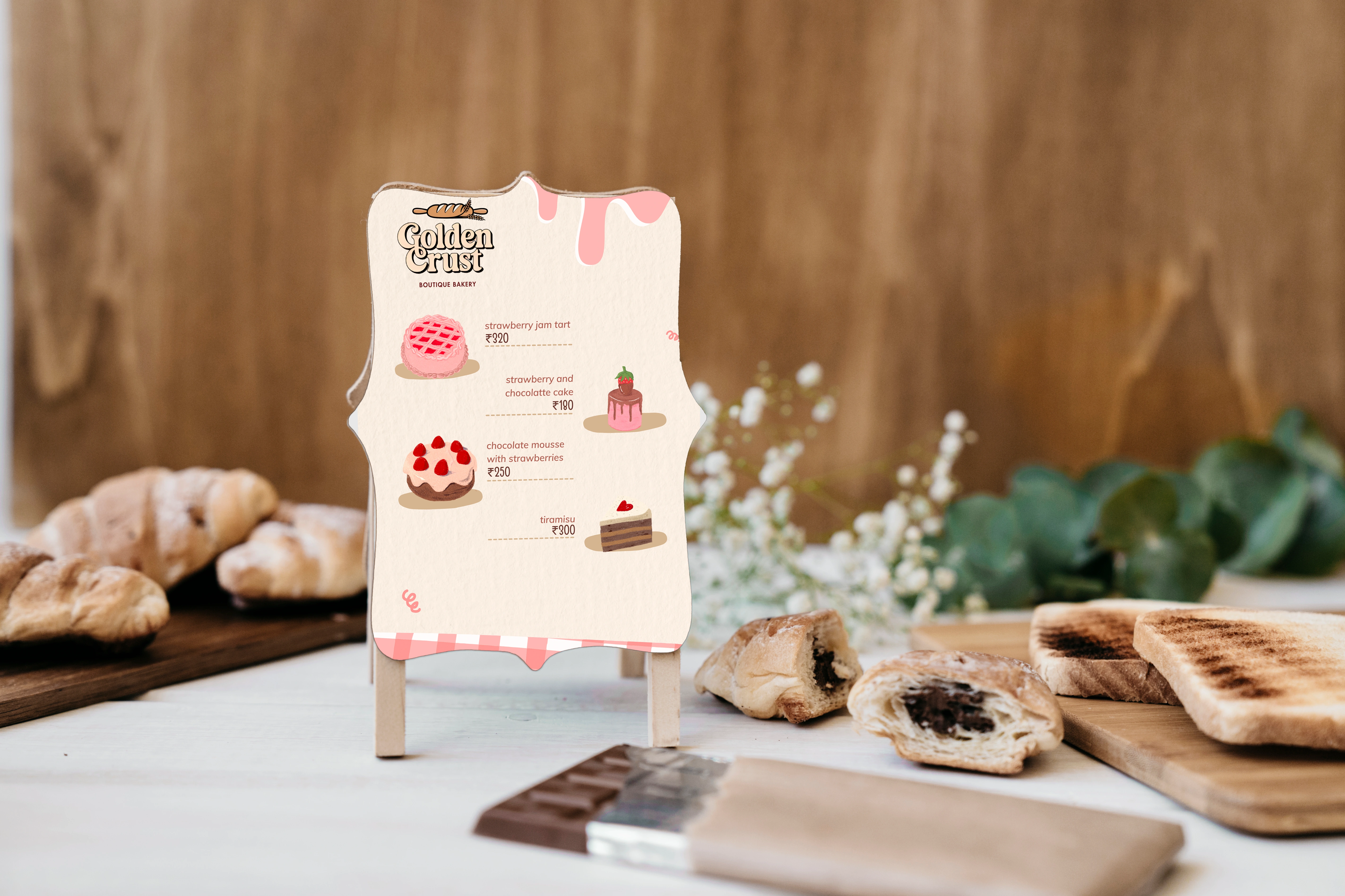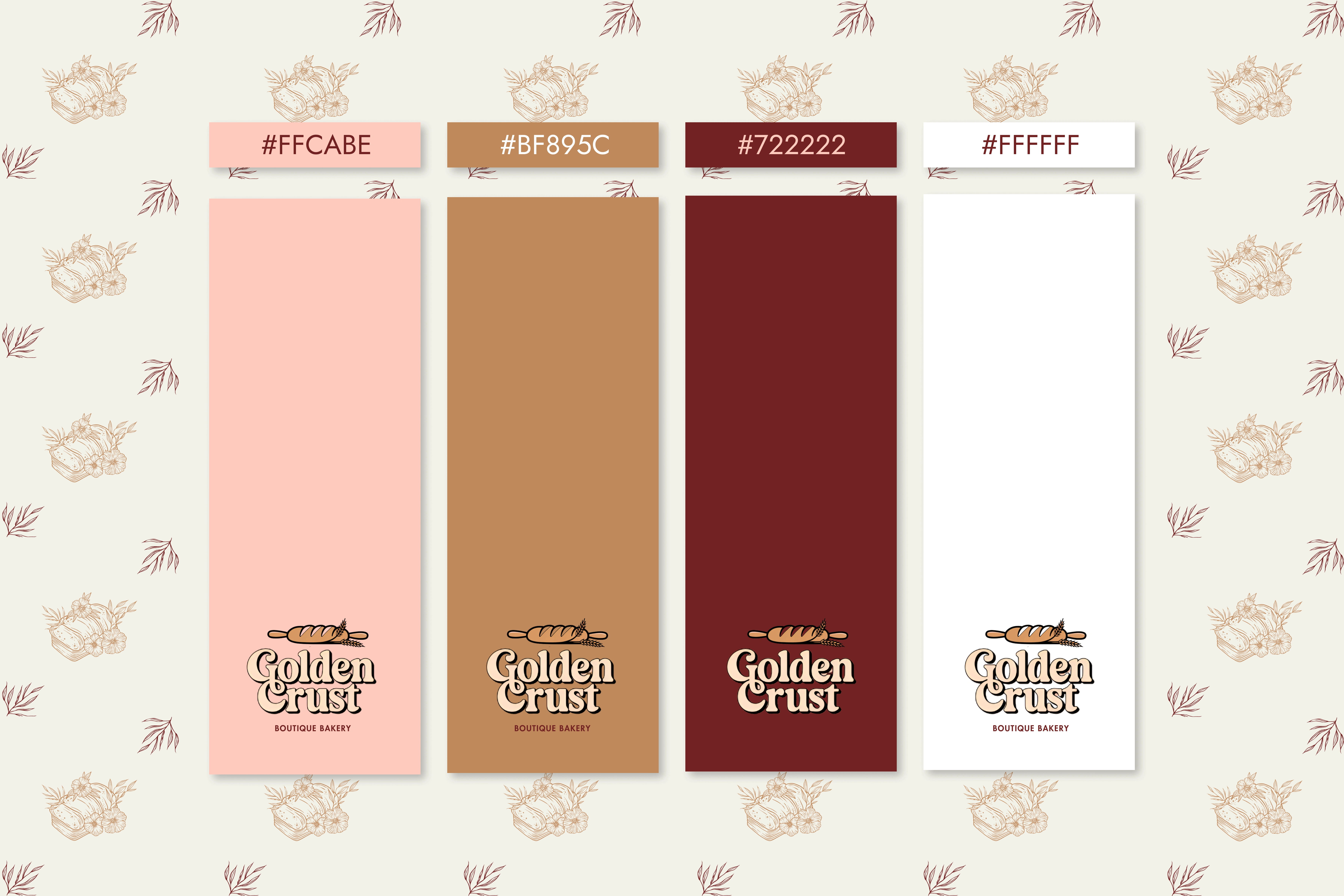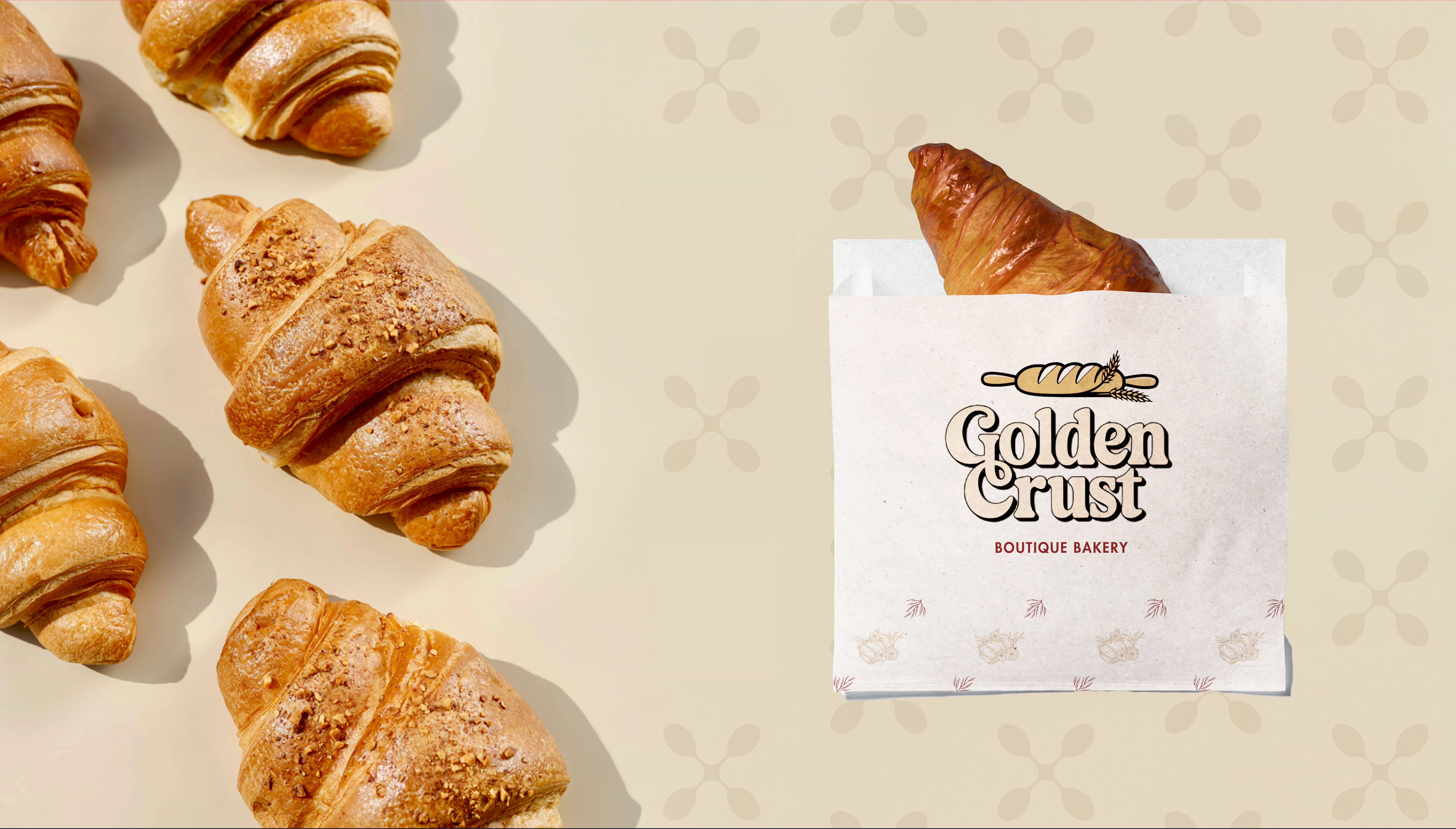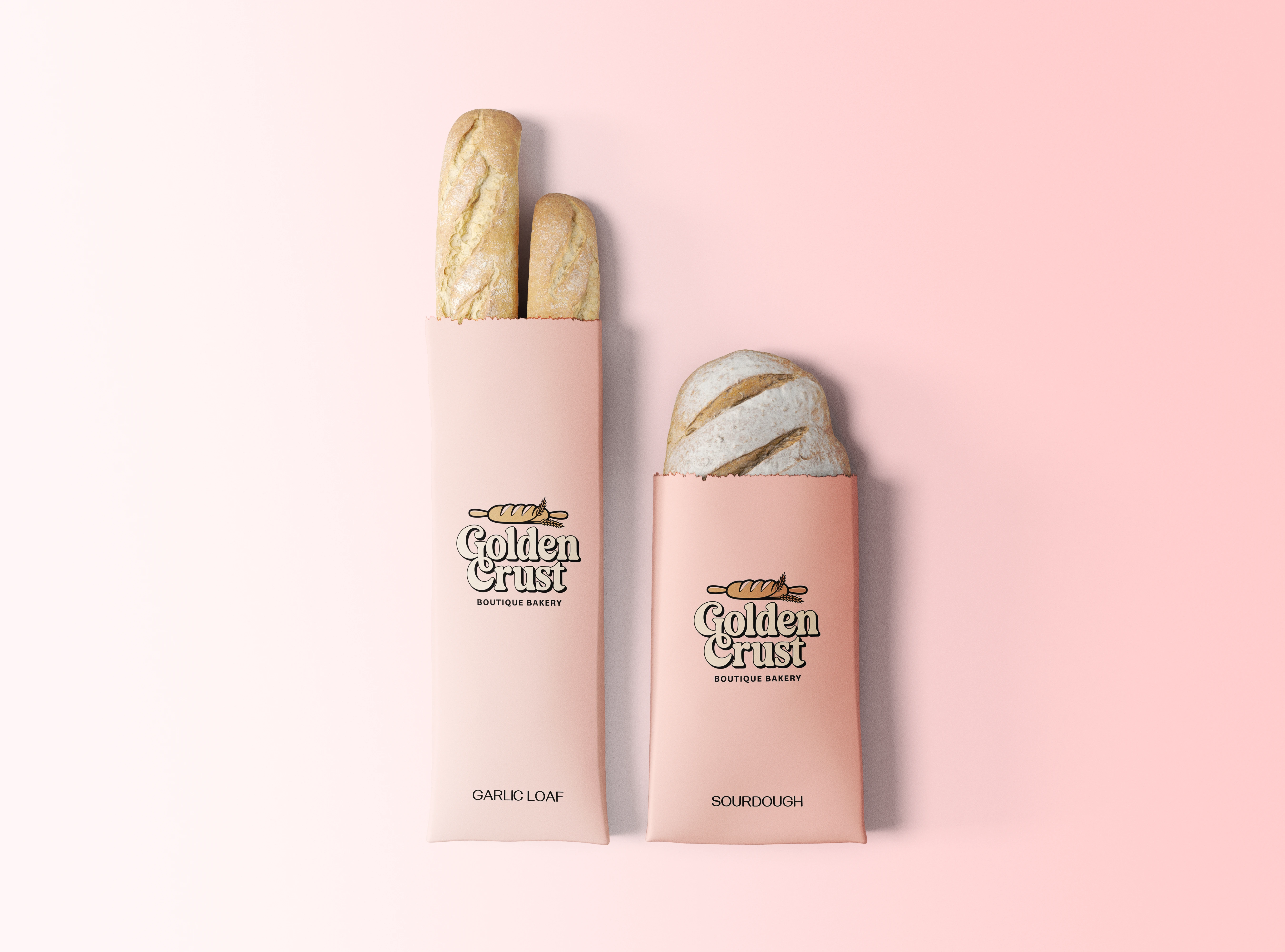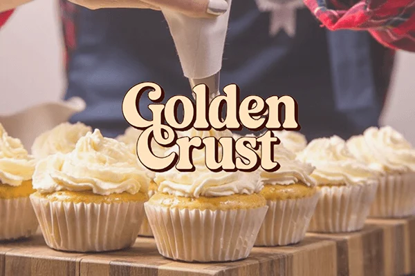 Golden Crust delivers a warm, premium bakery identity featuring a rustic logo and cozy packaging. The result is a cohesive brand that elevates artisanal appeal.