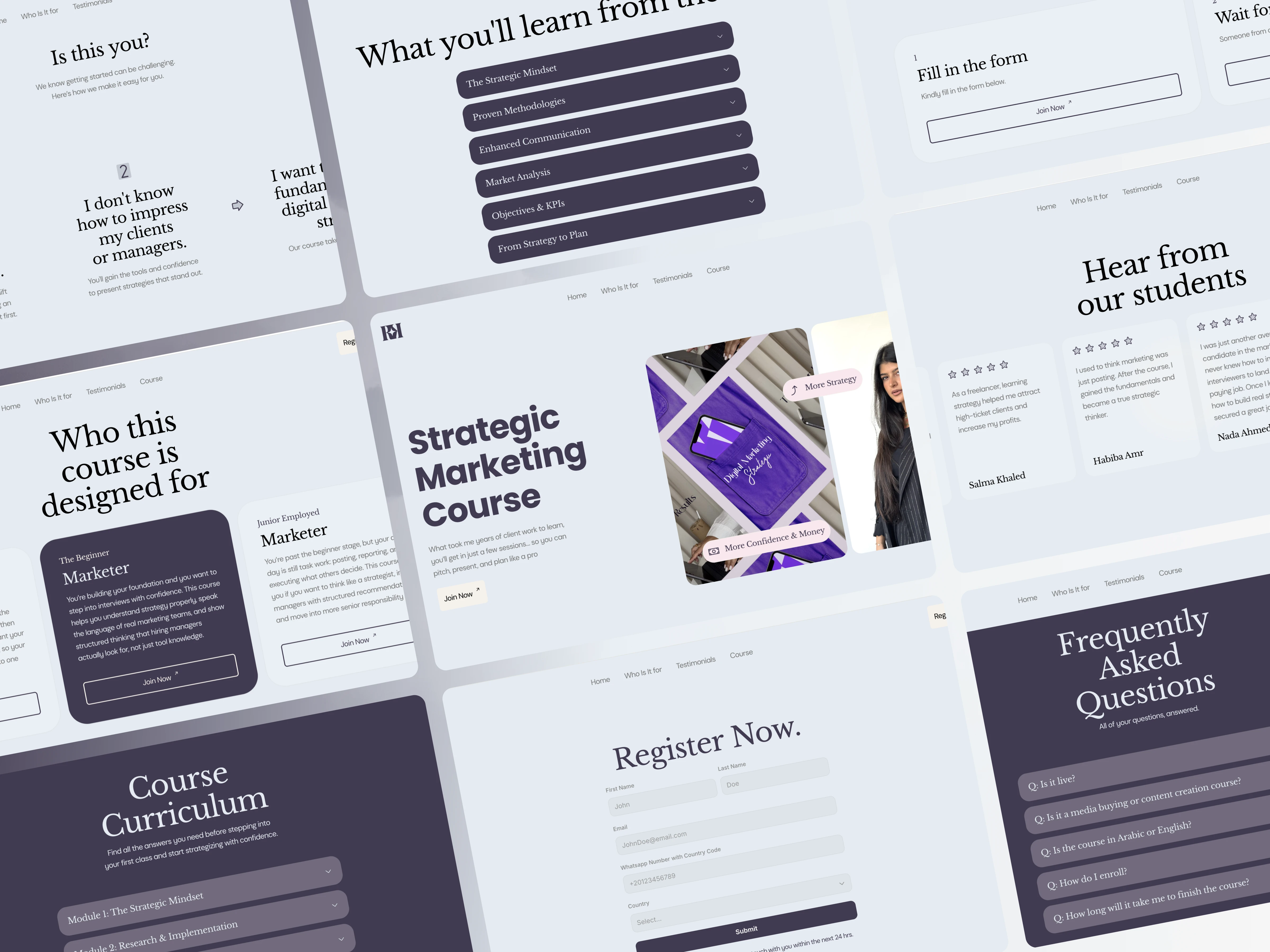 Conducted an initial discovery meeting to understand Reema's vision and specific requirements: The website should include all the details about the digital marketing course, the registration process, curriculum, and who the course is for, all while being minimal and easy to read.