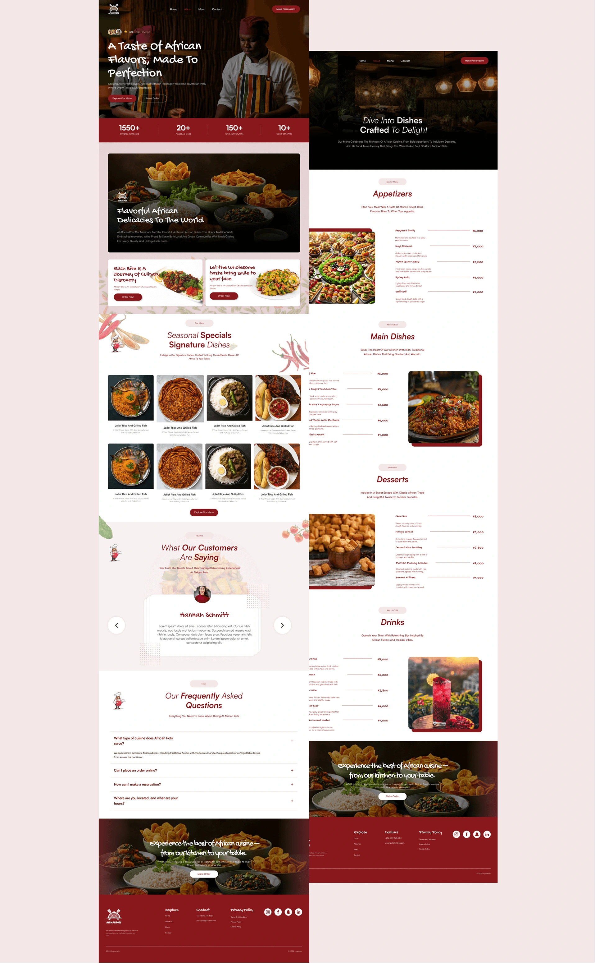 African Pots is a restaurant offering flavorful, authentic African dishes that blend traditional recipes with modern innovation. Serving local and global communities, it prioritizes safety, quality, and unforgettable taste. The project involved designing a website that showcases their culinary offerings and mission.