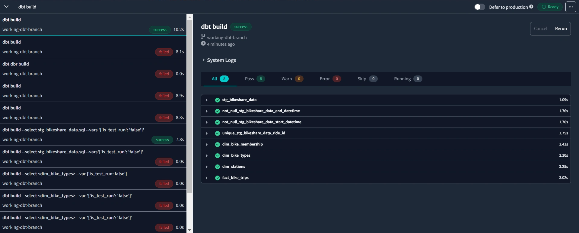 dbt build model. A s u c c e s s f u l build is g r e e n