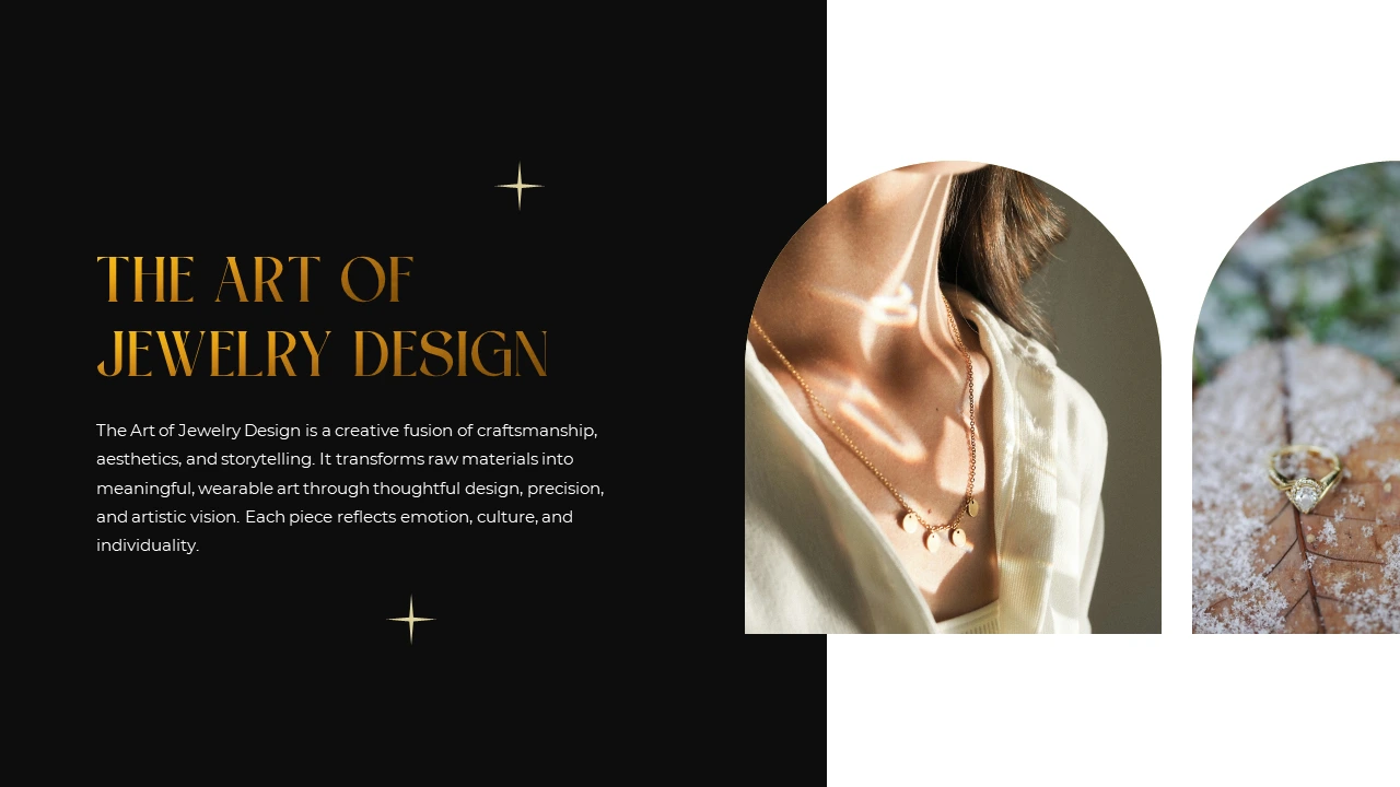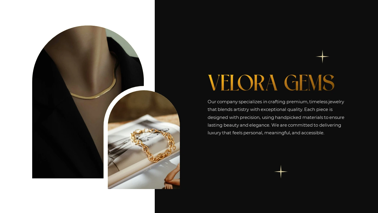 Modern Jewelry Pitch Deck Design Highlighting Velora Gems Products