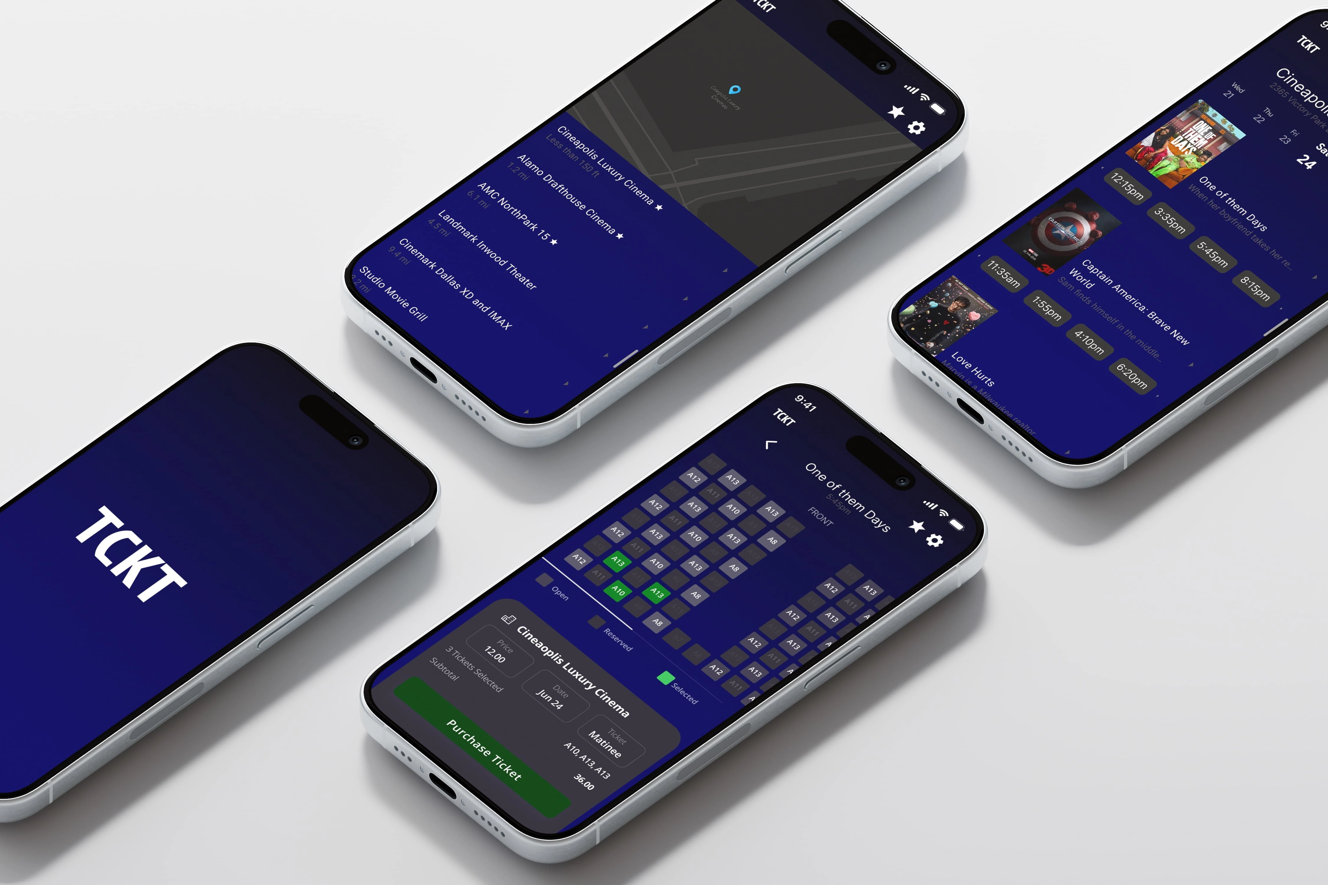 Designed a movie ticketing app (TCKT) with a clean UI, simplified user flow, and integrated loyalty tracking to streamline the ticket purchase experience.