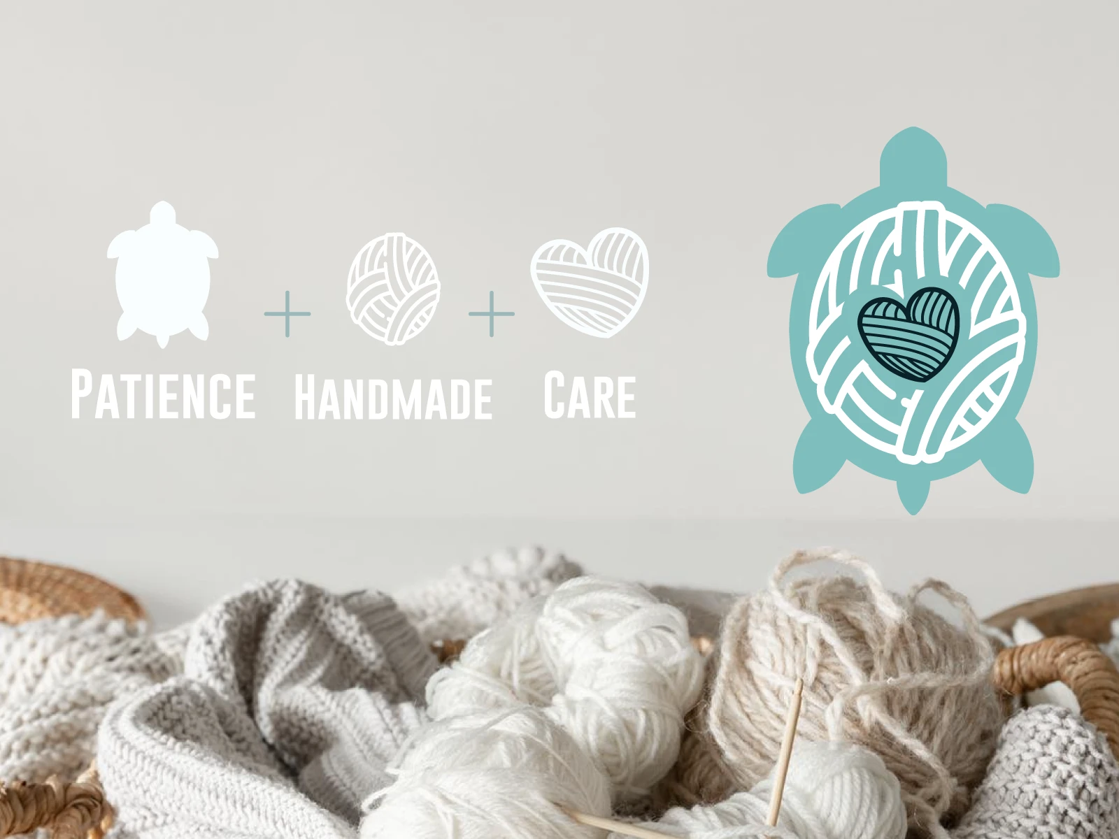 I developed a symbolic mark combining three core elements: a turtle representing patience, a yarn ball symbolizing craft, and a heart expressing care and emotional connection. The typography pairs a bold sans-serif with a handwritten script to balance structure and human touch.