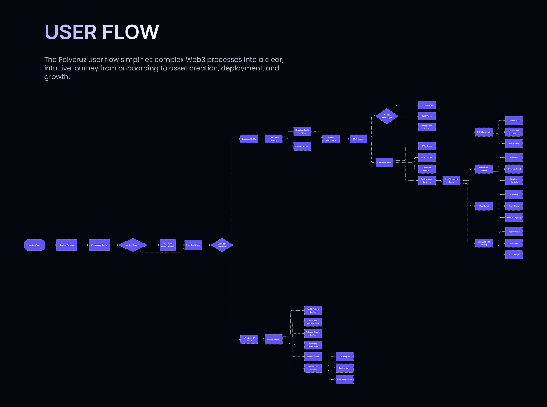 Polycruz is a next-gen NFT infrastructure platform designed to simplify and supercharge the NFT journey from creation to launch. Built with a sleek, dark-themed UI, this high-impact landing page reflects innovation, performance, and trust—tailored for blockchain-native users and NFT creators. The experience is optimized through clean layout structure, crisp typography, and product-centric storytelling.