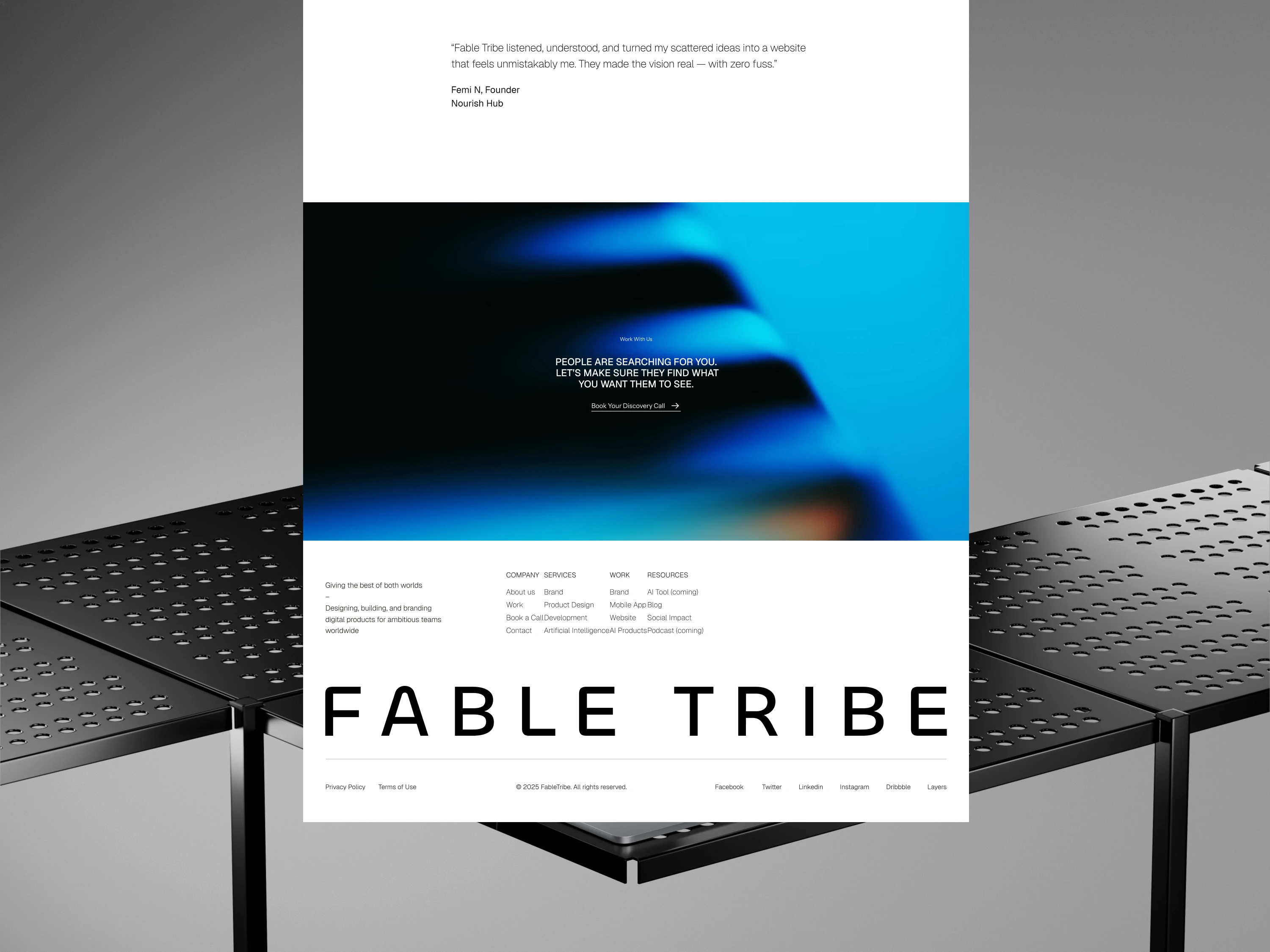 Fable Tribe is a full‑service digital product studio that takes ideas from first sketch to market‑ready launch. Our cross-functional crew—comprising UI/UX designers, software engineers, and brand experts—collaborates under one roof, so you deal with one accountable partner, not a patchwork of outsourcers. We’ve shipped 120+ websites, apps, and brands for startups and enterprises alike, cutting time‑to‑market while raising the bar on craft and performance. When you hire Fable Tribe, you hire the whole Tribe, focused, senior talent dedicated to getting the job done.