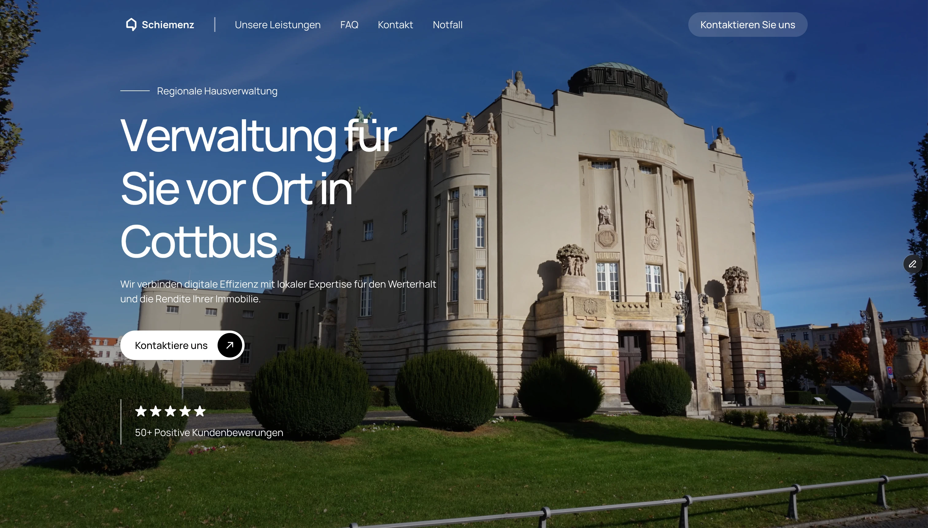 We created a clear, trustworthy online presence for Schiemenz Haus- und Hofbetreuung. The design was specifically tailored toward service and accessibility.