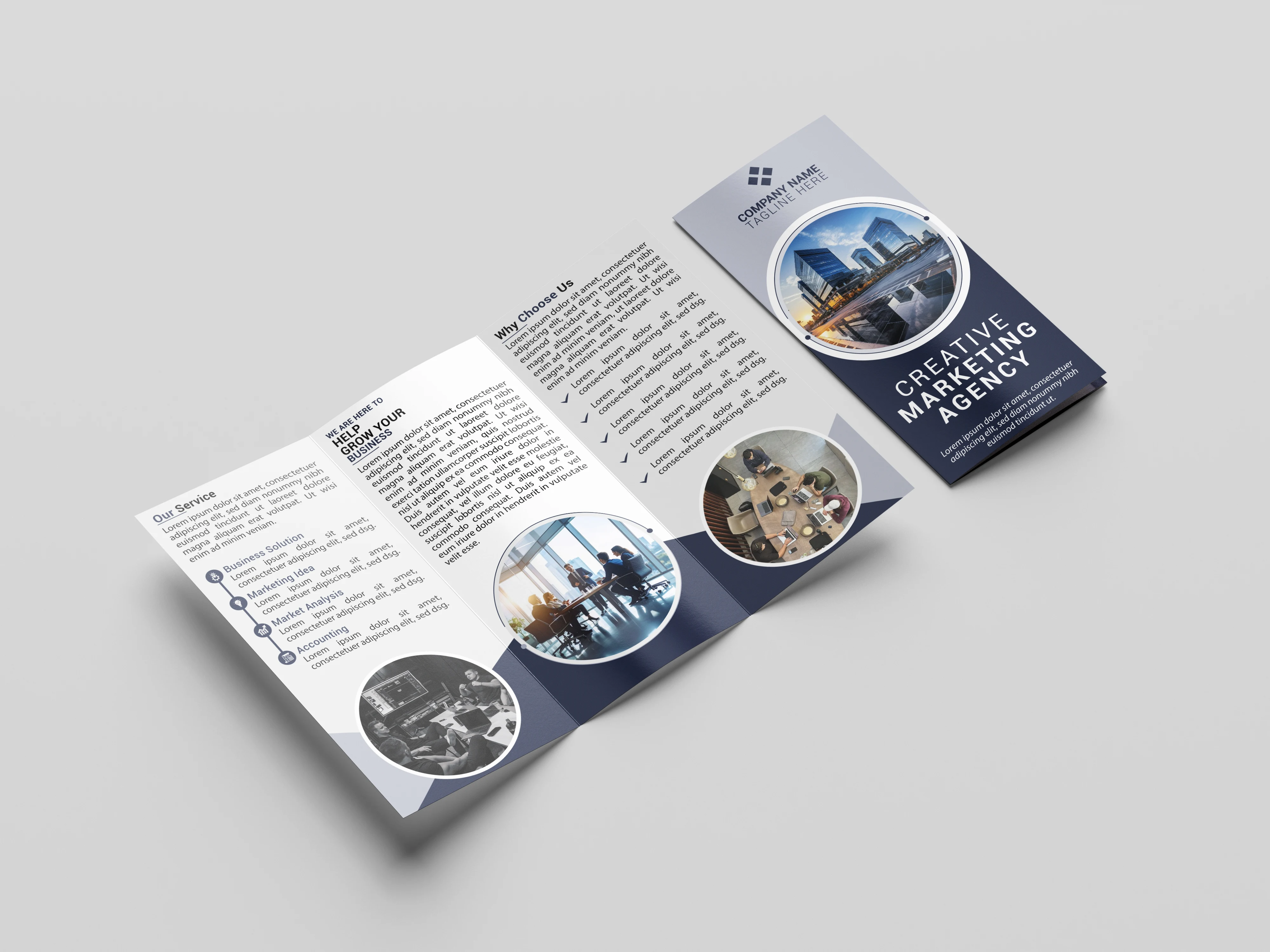 This project involves the conceptualization and design of a professional tri-fold brochure aimed at a modern marketing agency. The objective was to create a versatile marketing tool that provides a comprehensive overview of agency services while maintaining a high-end, corporate feel.